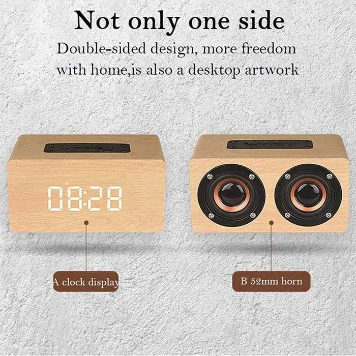 Материал: дерево 2 цвета: желтый, коричневый Размер: 150 мм x 85 мм x 75 мм/5,90 дюйма x 3,34 дюйма x 2,95 дюйма Тип: Беспроводной Динамик Количество: комплект Выходная мощность: 6 Вт Протокол Bluetooth: 4,2 Канал: 2 Воспроизводимые форматы: MP3 Поддерживаемый Формат: tf-карта Отношение сигнал-шум: ≥75db Время игры: 6 часов Количество динамиков: 2 Расширенное Хранение: 16 Гб Источник питания: встроенная литиевая батарея Эффективное расстояние: 10 м Функция: 4,2 чип Bluetooth. Большие экранные часы отображаются. Поддержка воспроизведения tf-карты. Голос HD вызова. Длительный срок службы батареи. FM радио воспроизведения. Поддержка громкой связи. Поддержка AUX воспроизведения. Поддержка настроек сигнализации. Содержание упаковки: 1 х беспроводной комплект динамиков Примечание: В связи с разницей в цветопередаче разных мониторов, зависимости от мониторов изображение может неточно отражать фактический цвет item.1cm = 0,3937 дюймов