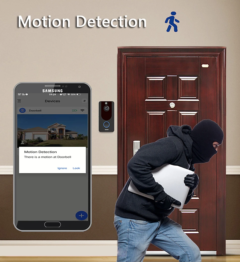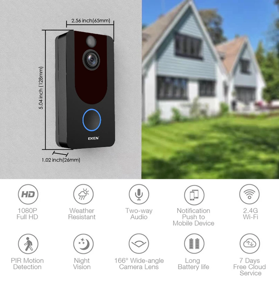 С видео 1080P full HD, EKEN видео дверной звонок V7 является нашим самым передовым дверной звонок еще. Отслеживайте свой дом в видео с высоким разрешением 1080P и смотрите, слышите и говорите с посетителями из любой точки мира.
