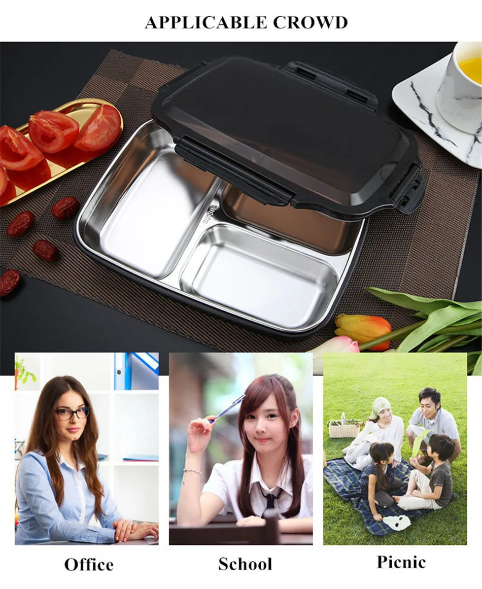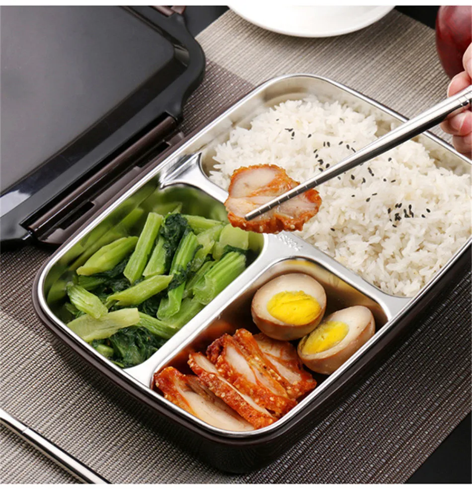 Ланч коробка из нержавеющей стали Портативный Bento Box Microwavable контейнеры еды с отсеками кипячения воды изоляции