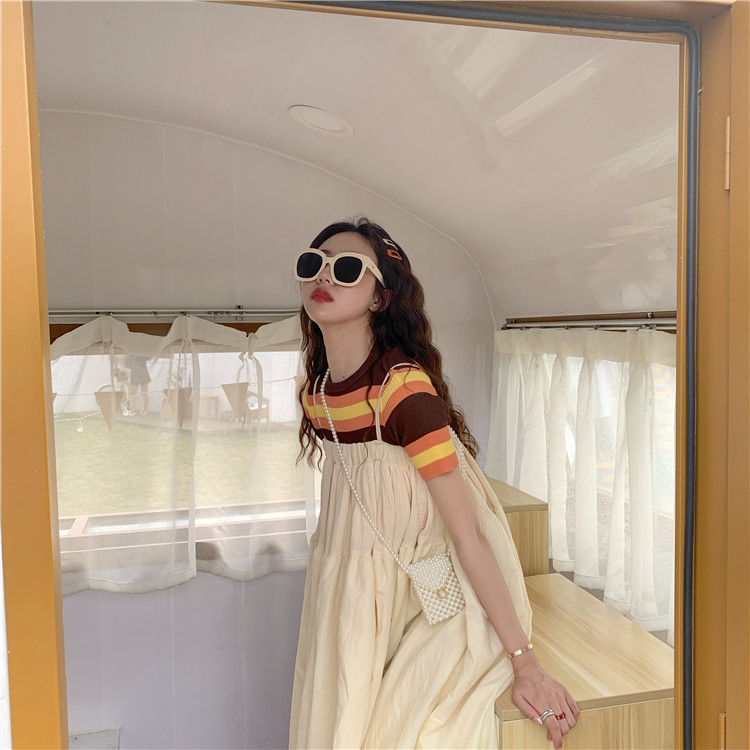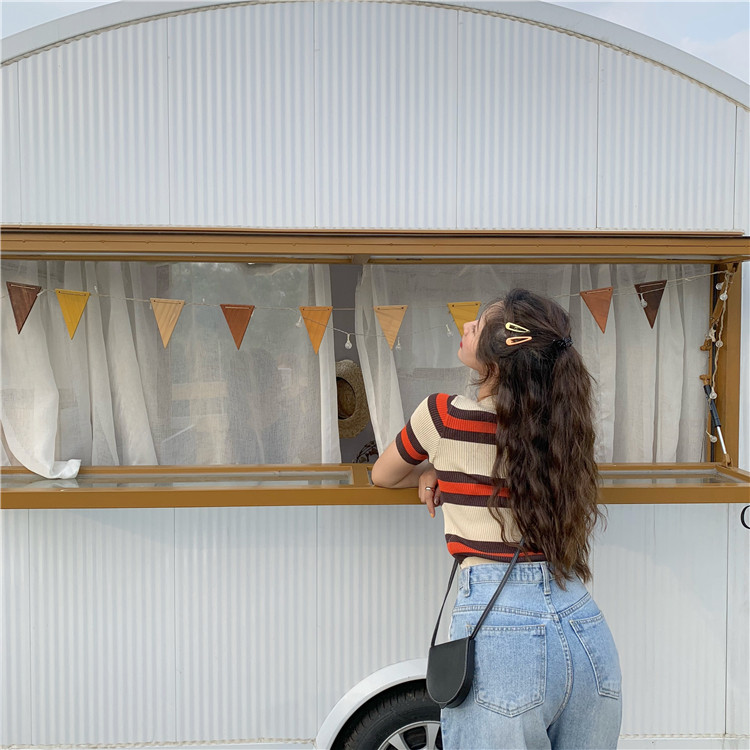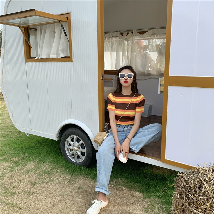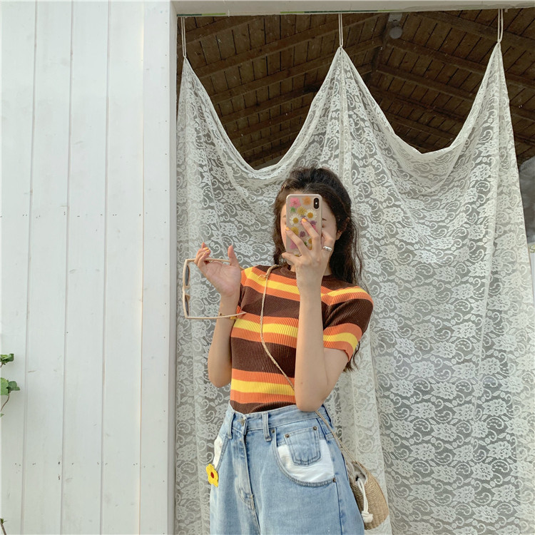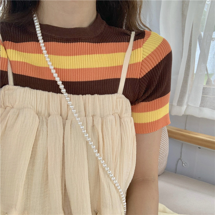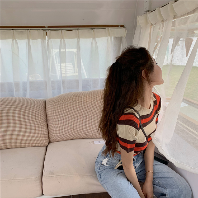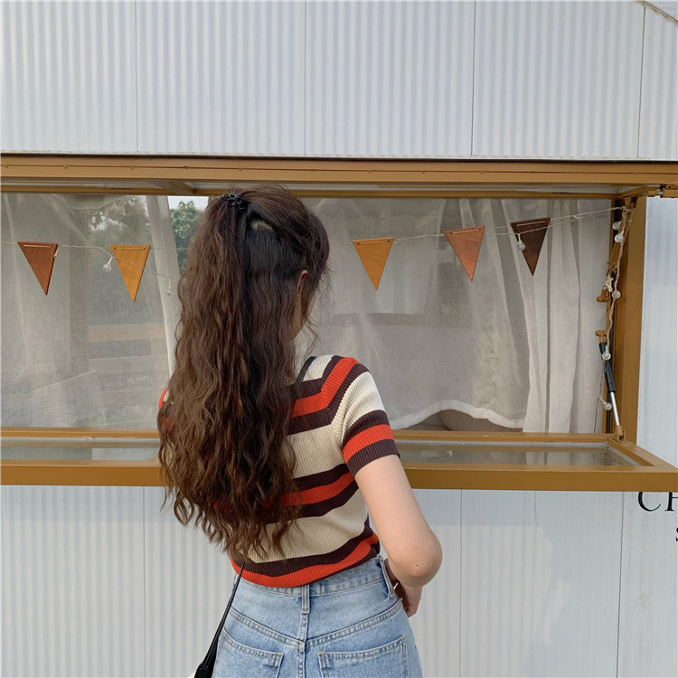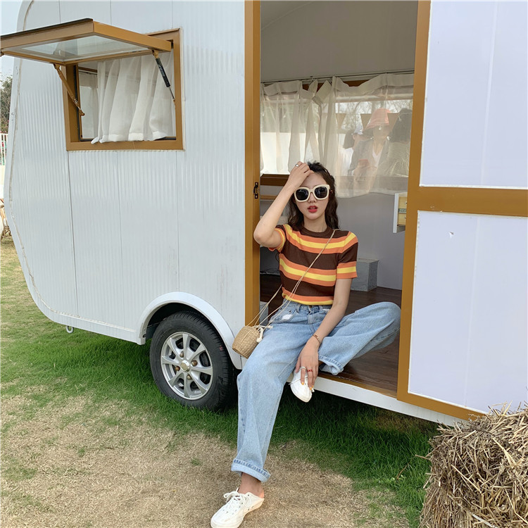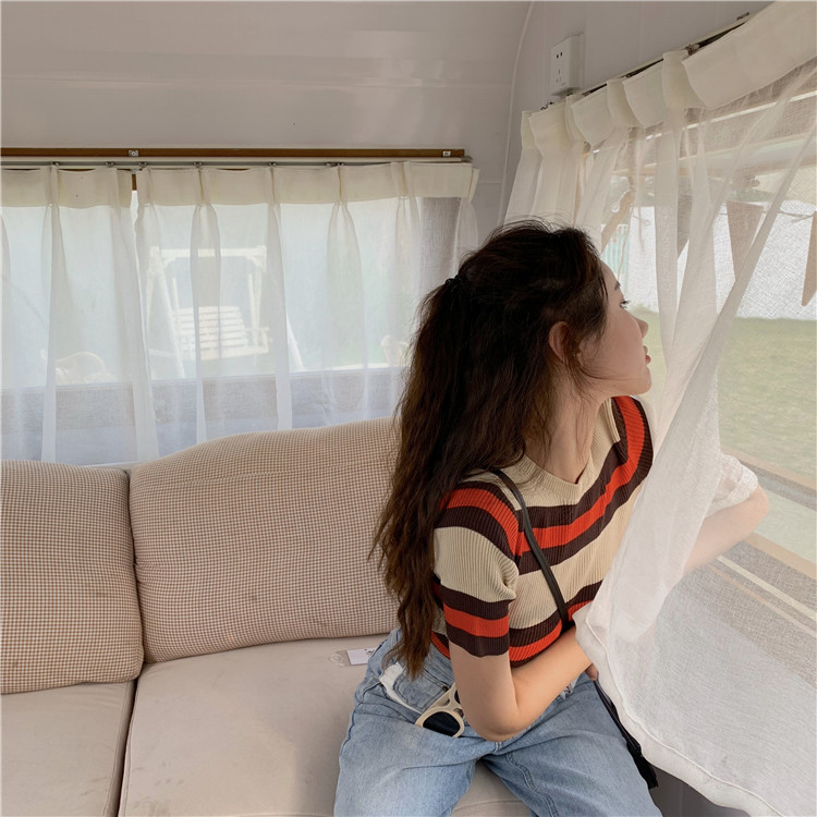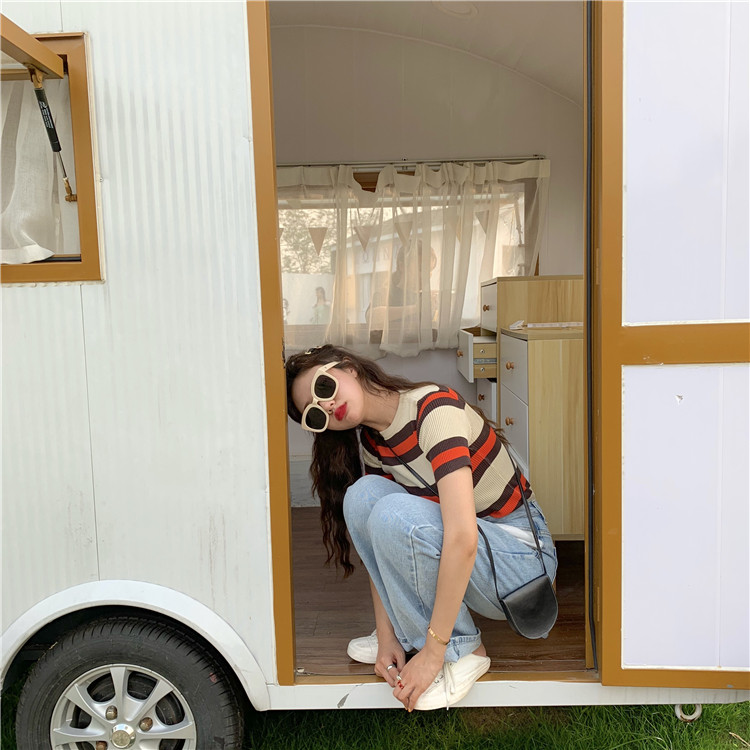 2 цвета 2019 летний корейский стиль полосатый свитер тонкий вязаный Топы Футболки с коротким рукавом женская футболка рубашка femme