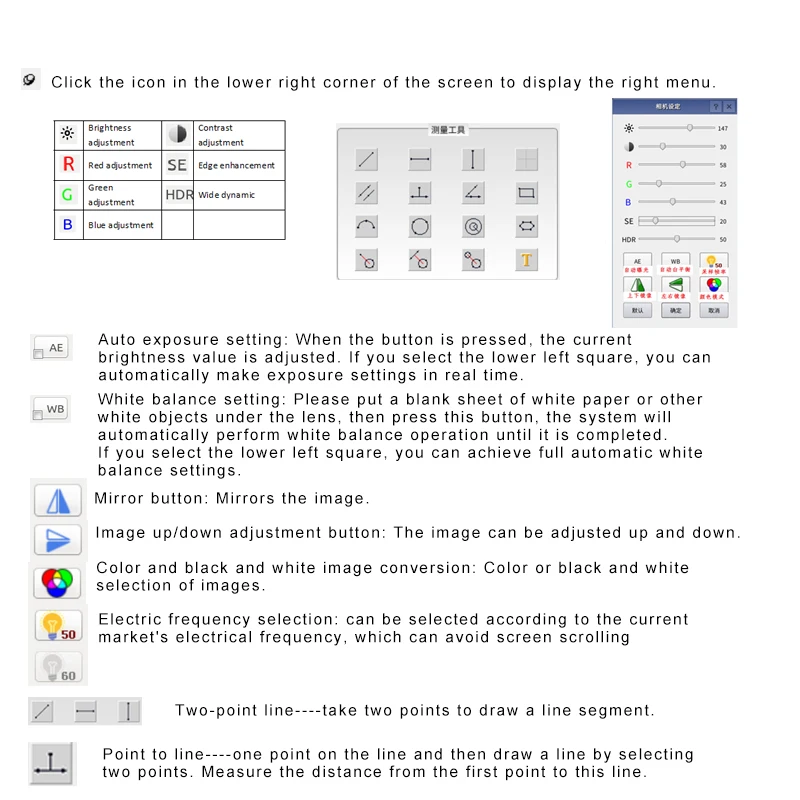 1. Этот продукт является выходом HDMI и может быть подключен только к дисплею с разъемом HDMI. Продукт имеет два usb-выхода, один для подключения мыши и один для подключения к флеш-накопителю USB. Измерения могут быть выполнены непосредственно на дисплее с помощью мыши. Сохраните фотографии.