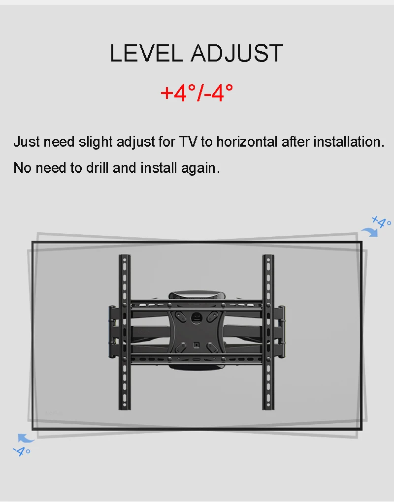 * С этим полным креплением для телевизора вы можете легко зафиксировать, наклонить, расширить, сложить и повернуть телевизор и любой угол обзора, что бы вы ни хотели.