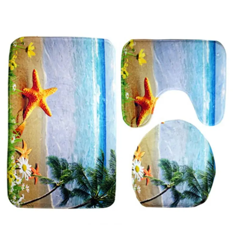 3pcs Ocean Underwater World Anti Slip Mat Toilet Pattern Carpet Bathroom Mat Set