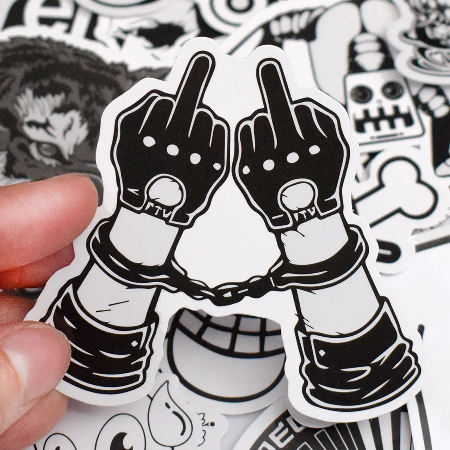 50 шт. черно-белая наклейка Граффити Классная рок АНИМЕ DIY наклейки для автомобиля Стайлинг ноутбук холодильник чемодан СКЕЙТБОРД гитара
