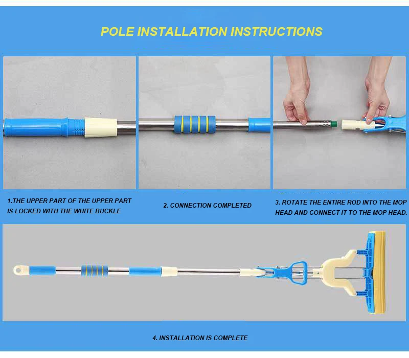Ручка швабры изготовлена из высококачественной нержавеющей стали, которая прослужит годами при правильном использовании и уходе.