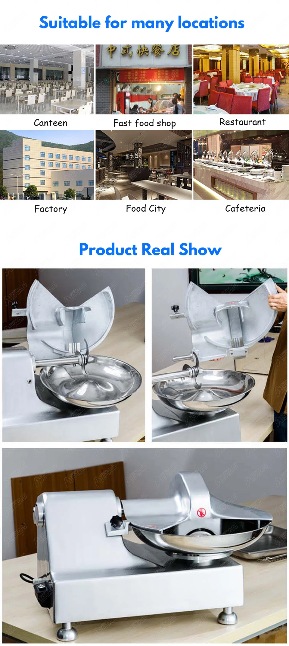 1. Высококачественный корпус из алюминиево-магниевого сплава: плавный, прочный и легко чистится 2. Мощный двигатель, сердечник из чистой меди: Полностью закрытый бесшумный двигатель из чистой меди, с более длительным сроком службы и более высокой эффективностью смешивания 3. Износостойкое лезвие из нержавеющей стали: изготовлено из нержавеющей стали, острое и износостойкое лезвие, что делает наполнители более деликатными 4. Простой и безопасный дизайн переключателя: разумная структура, простая работа, безопасный дизайн 5. Нескользящие ножки: гладкие, безопасные и безопасные 6.5.5 л большая емкость для резки и смешивания ВОК: Большая емкость для резки пищевых продуктов и смешивания вок с защитной крышкой, безопасный, гигиеничный и прочный 7. Многофункциональная машина, разнообразные продукты: может производить наполнители, состоящие из различных ингредиентов