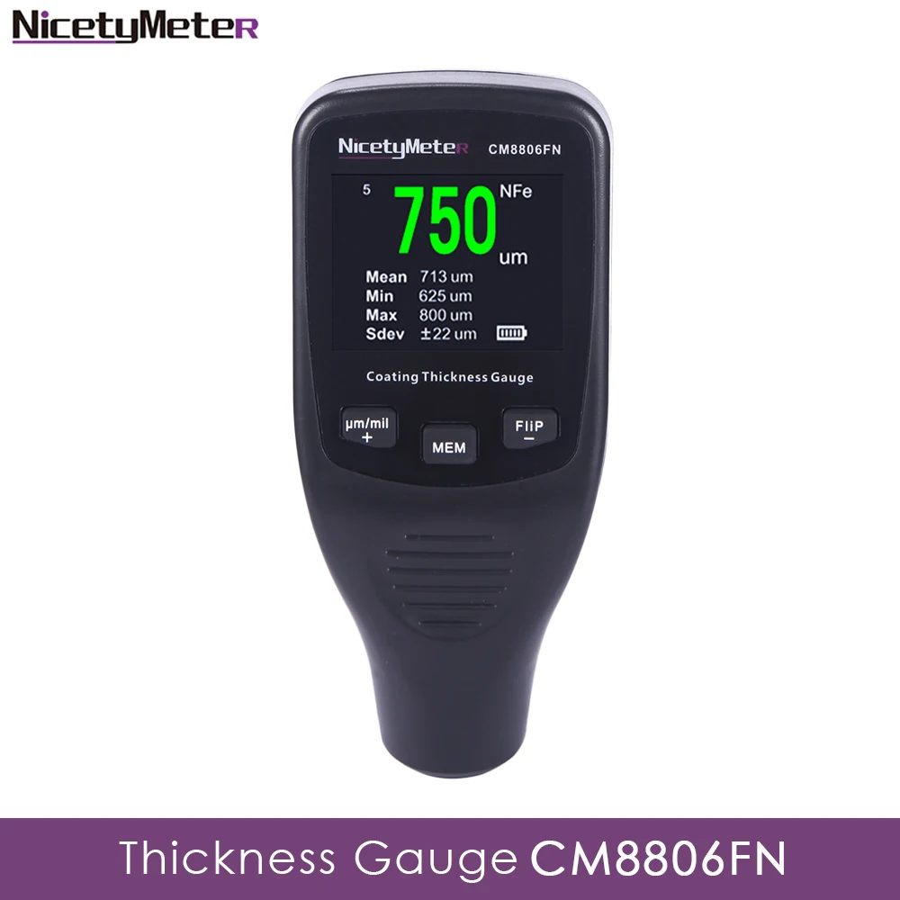 Nicetymeter CM8802FN + автоматический прибор для измерения толщины покрытий окрашенных поверхностей автомобиля датчик толщины пленки метр TFT экран дисплей 49mil 1250um