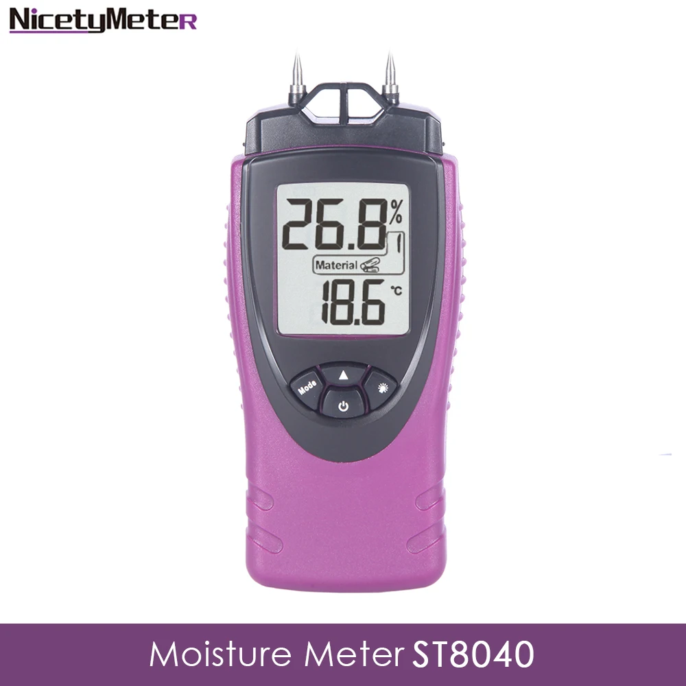 Цифровой измеритель влажности древесины Nicetymeter ST8040, измеритель влажности древесины из закаленного дерева, строительные материалы, тестер температуры с подсветкойUS $24,80 /