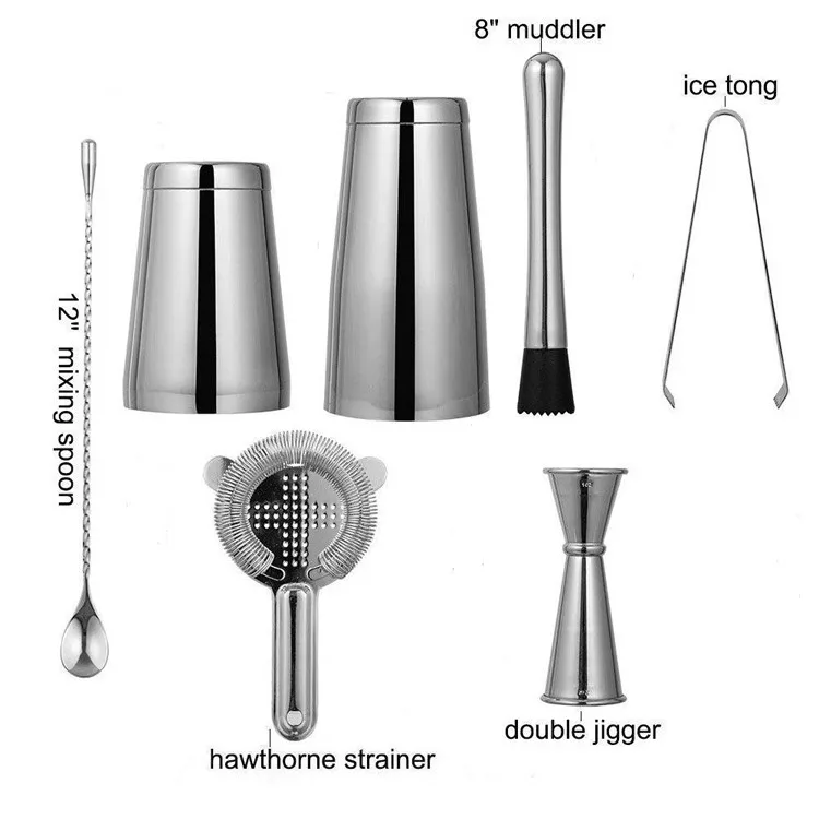 Набор из 7 шт. в американском стиле, 750 мл, шейкер из нержавеющей стали, набор инструментов Boston, шейкер для коктейлей, набор для коктейлей