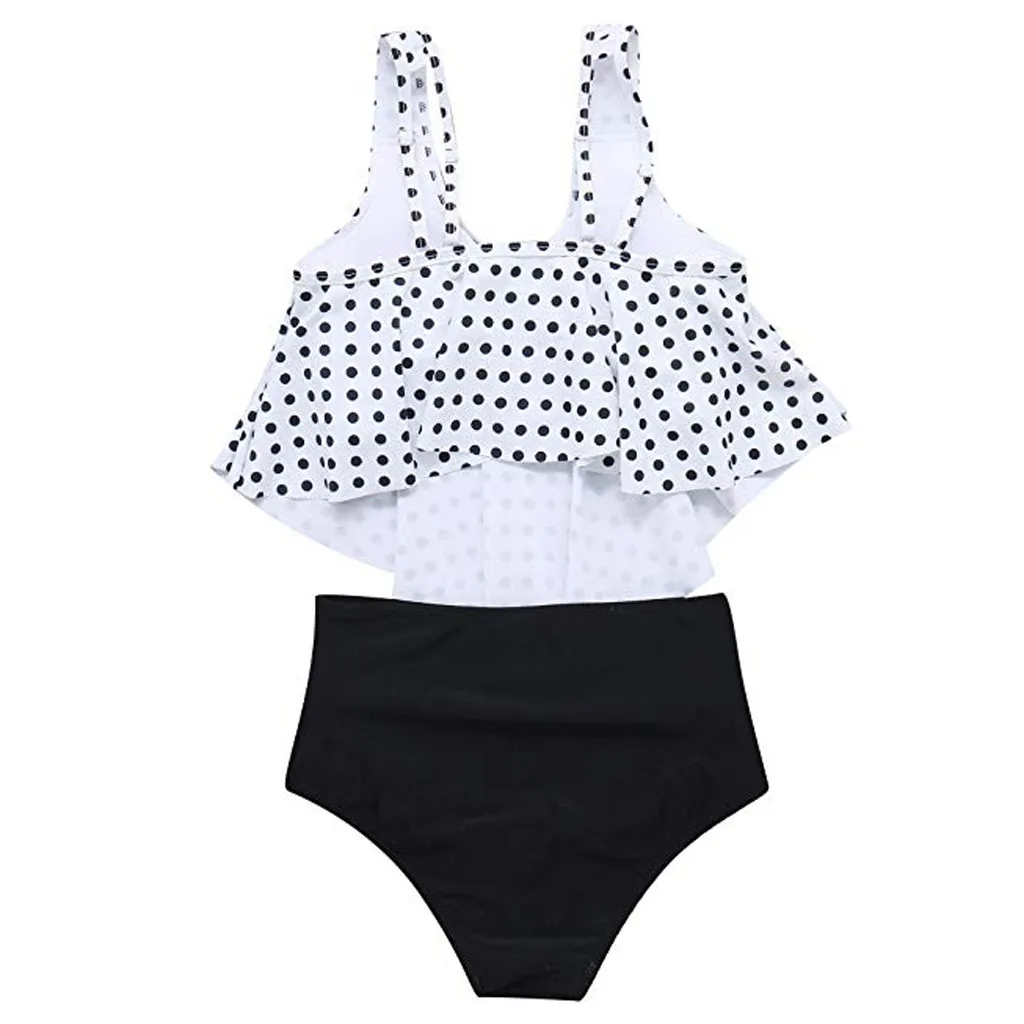 Женский купальный костюм из двух предметов, топ с оборками и высокой талией, комплект бикини, танкини, купальник