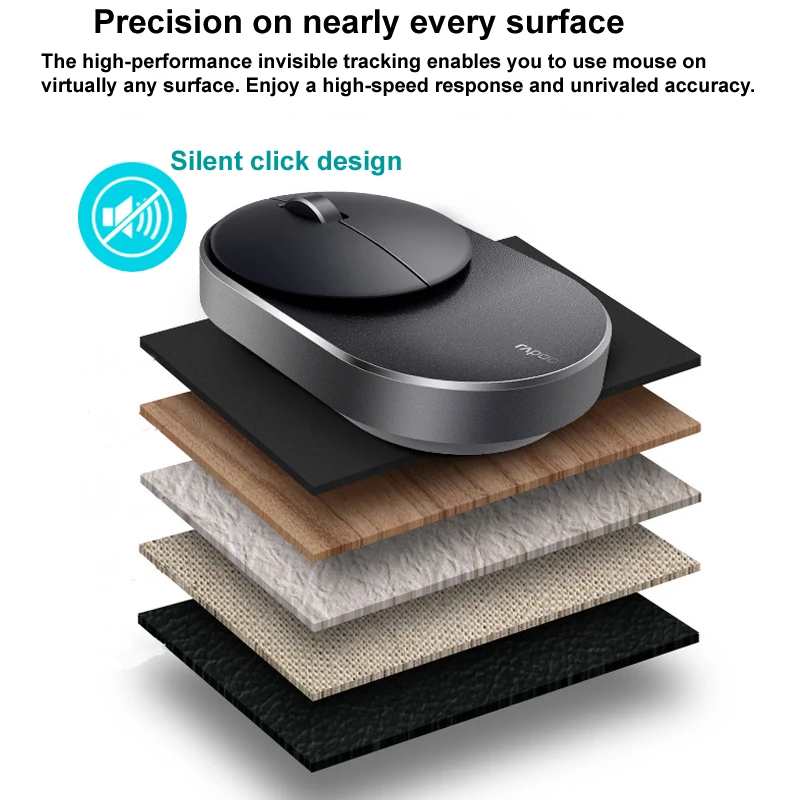 ✅Переключение между Bluetooth 3,0, 4,0 и 2,4G Умный переключатель между Bluetooth 3,0, 4,0 и 2,4G обеспечивает стабильную беспроводную передачу. Вы все еще можете использовать мышь независимо от нехватки usb-порта или потери приемника. ✅Умный переключатель между несколькими устройствами Автоматическое Сопряжение рабочего устройства. Он одновременно подключается к 3 устройствам и легко переключается между ними. Это упрощает сложные кросс-платформенные маневры и отвечает требованиям многозадачности. ✅Точность почти на каждой поверхности Высокопроизводительный лазерный двигатель позволяет использовать мышь практически на любой поверхности. Наслаждайтесь высокой скоростью отклика и непревзойденной точностью. ✅Двигатель слежения высокой четкости 1300 DPI Вы будете наслаждаться отзывчивым и плавным управлением курсором с оптическим трекинговым двигателем высокой четкости 1300 DPI. ✅Срок службы батареи 12 месяцев С новейшей энергосберегающей технологией Rapoo и переключателем питания, вы можете использовать мышь без прерывания питания до 12 месяцев. ✅Бесшумный дизайн Бесшумный правый и левый, поможет вам создать спокойную рабочую среду. ✅Магнитная адсорбционная Нижняя крышка, сохраняет баланс С магнитной адсорбцией нижней крышки, вы можете легко открыть мышь и положить батарею, нано приемник внутри .. Примечание покупателя: 1. Как строгий контроль таможней, поэтому мы открываем печать и снимаем батарею. Мы упаковываем его без аккумулятора. Если вы беспокоитесь об этом, пожалуйста, подумайте перед размещением заказа, спасибо искренне! 2.Rapoo M600 и M600G-это одна и та же мышь, мы вышлем вам случайный вариант с нашего склада. Пожалуйста, позаботьтесь перед заказом. 3. Черный цвет-серебристый, черный, белый-серебристый, белый, розовый-розовое золото, пожалуйста, обратите внимание на это перед заказом.