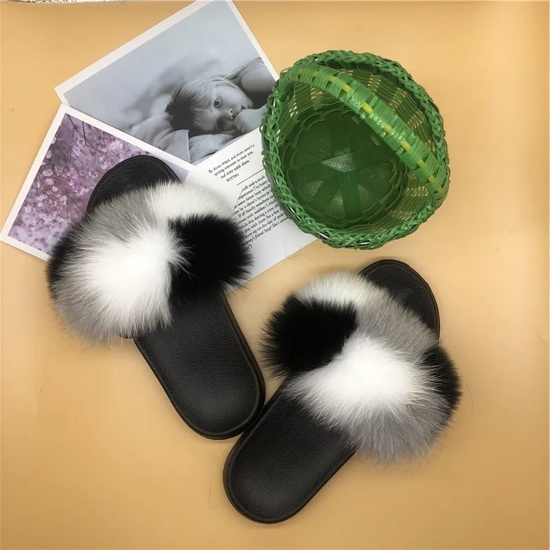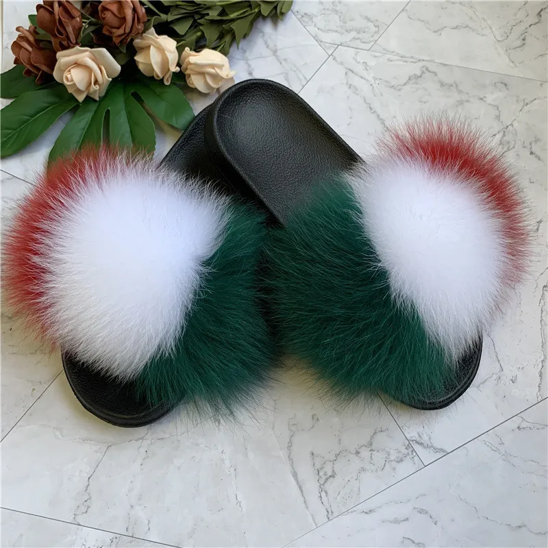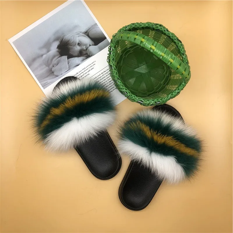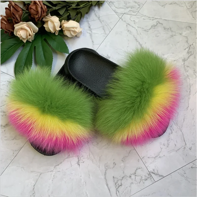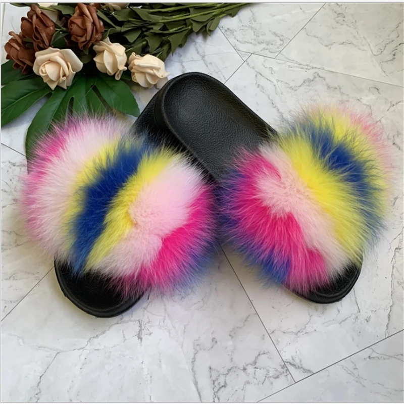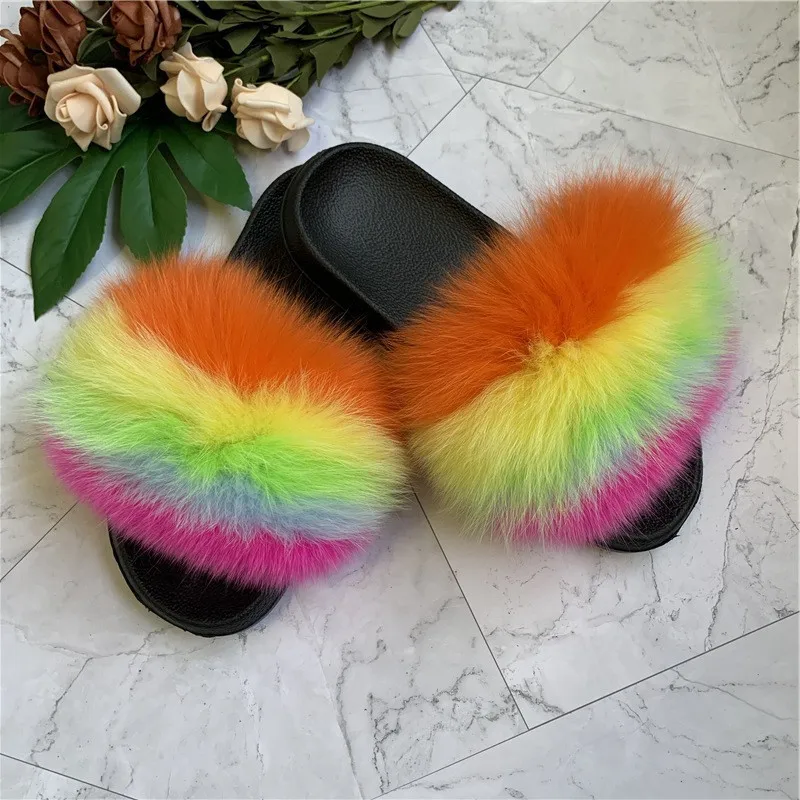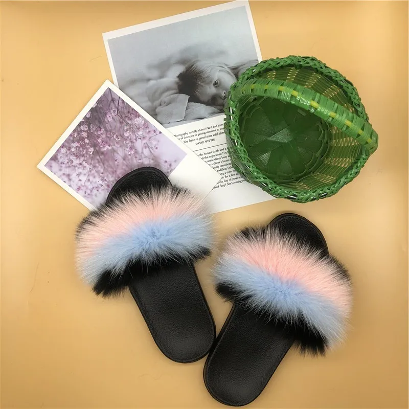 Женские зимние теплые меховые тапочки; Женские милые пушистые домашние Меховые Туфли; Плюшевые меховые туфли с лисьим мехом; Теплые вьетнамки для мужчин и женщин
