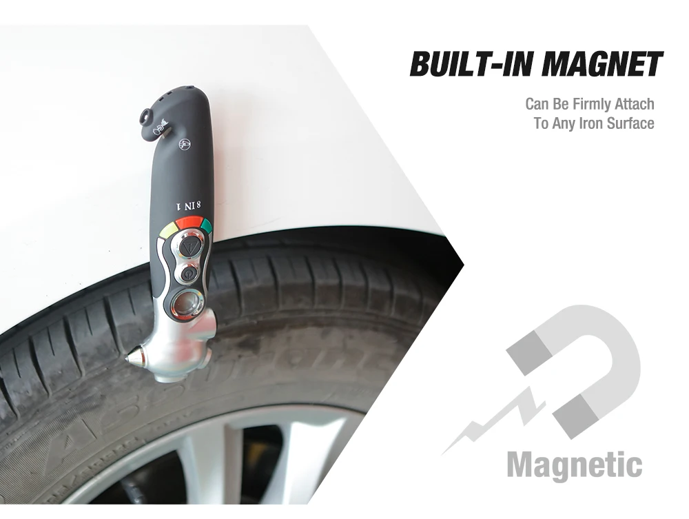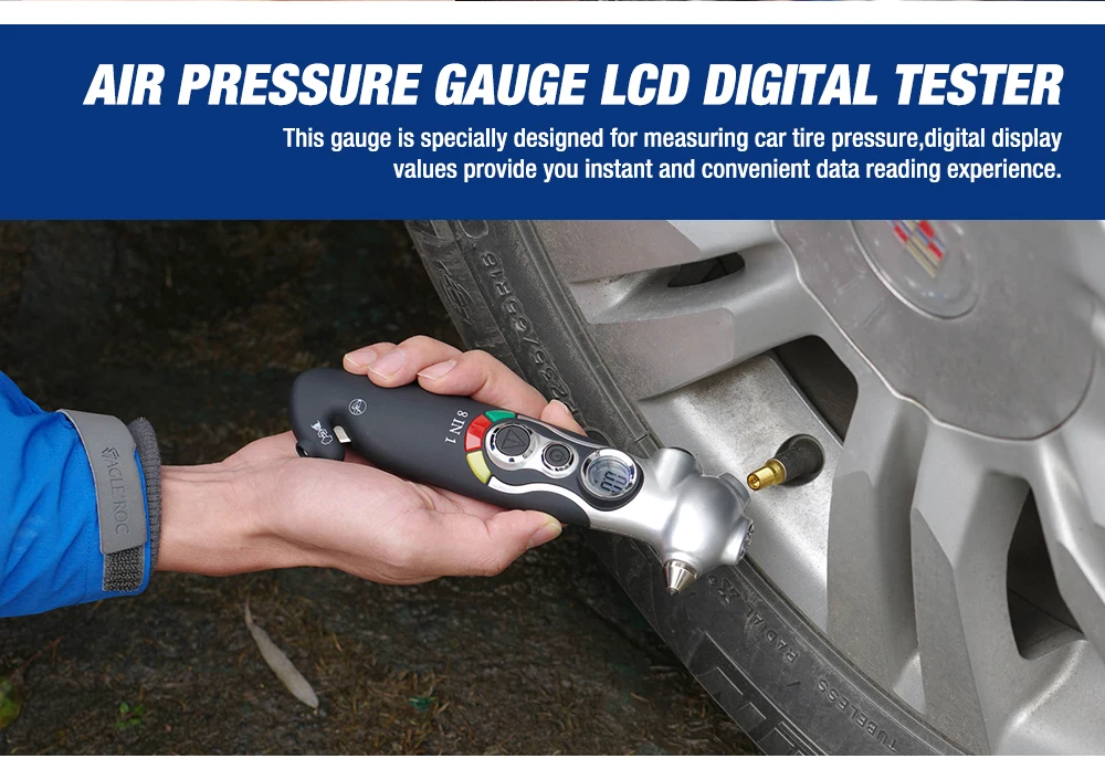 Манометр для шин 8-в-1 и аварийный инструмент, манометр для шин