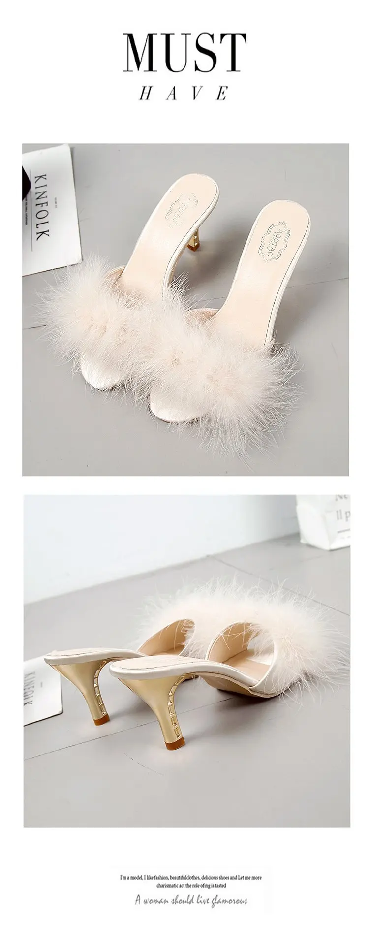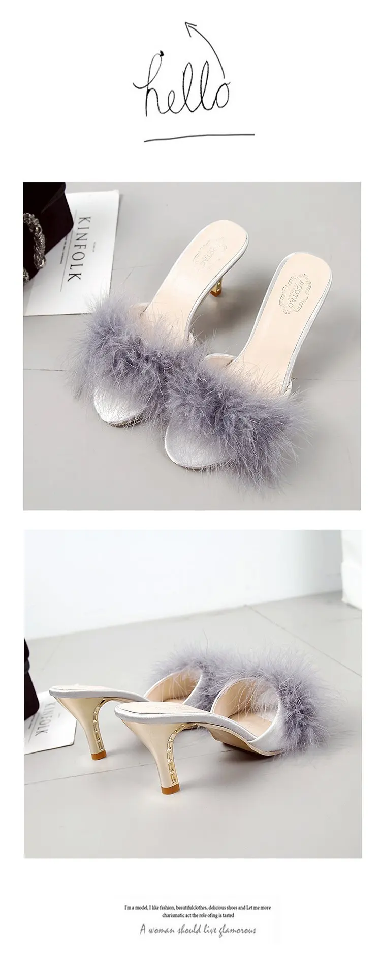 VOTODA/женские пушистые шлепанцы на среднем каблуке; Вечерние Нескользящие плюшевые шлепанцы для ночного клуба; Женские модные уличные Шлепанцы из искусственного меха