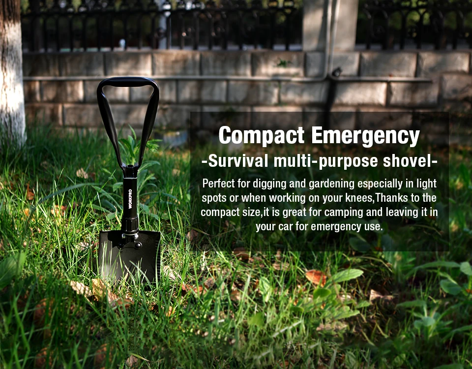 Thanks to the reinforced, strong blade our foldable shovel can dig into gravel with ease, a must have for backyards, private gardens, or even farmland