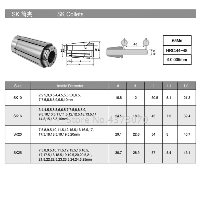 SK10 : High 31mm,Diameter:15.5 SK16 : High 46mm,Diameter:24.5 SK10 range:3-10mm SK16 range:3-16mm Precision:0.005mm Package included: 1 pcs collet