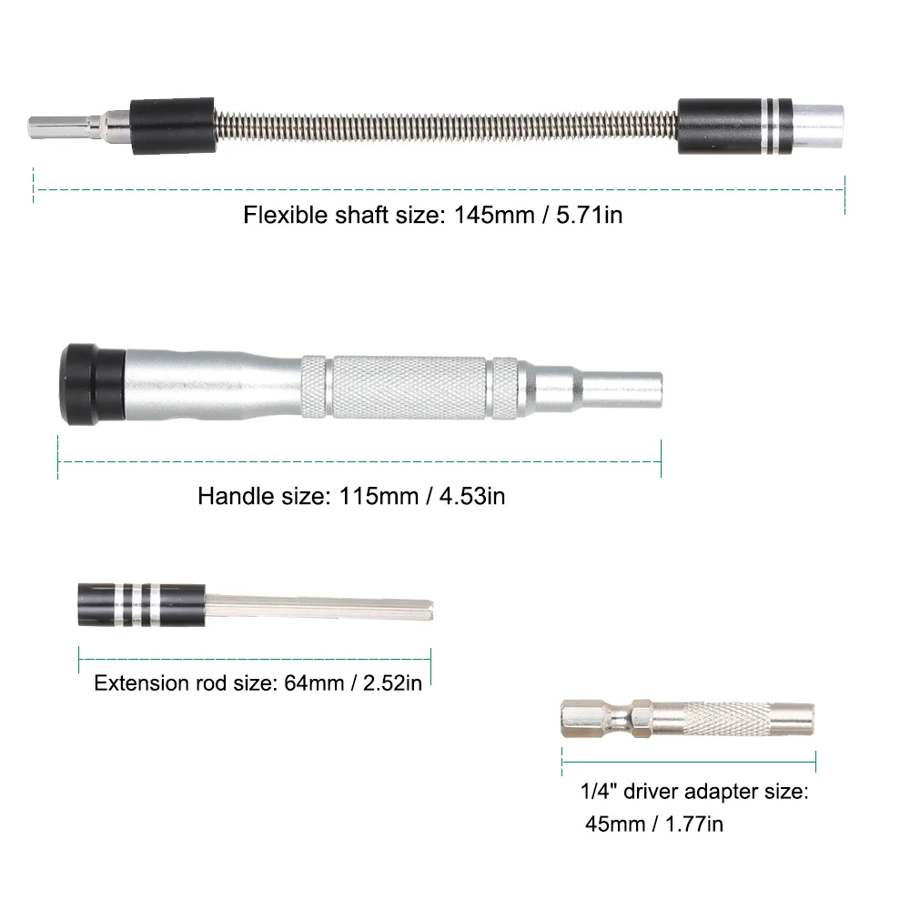 Включает в себя 60 бит отвертки, стержень ручки, удлинитель и т. Д.