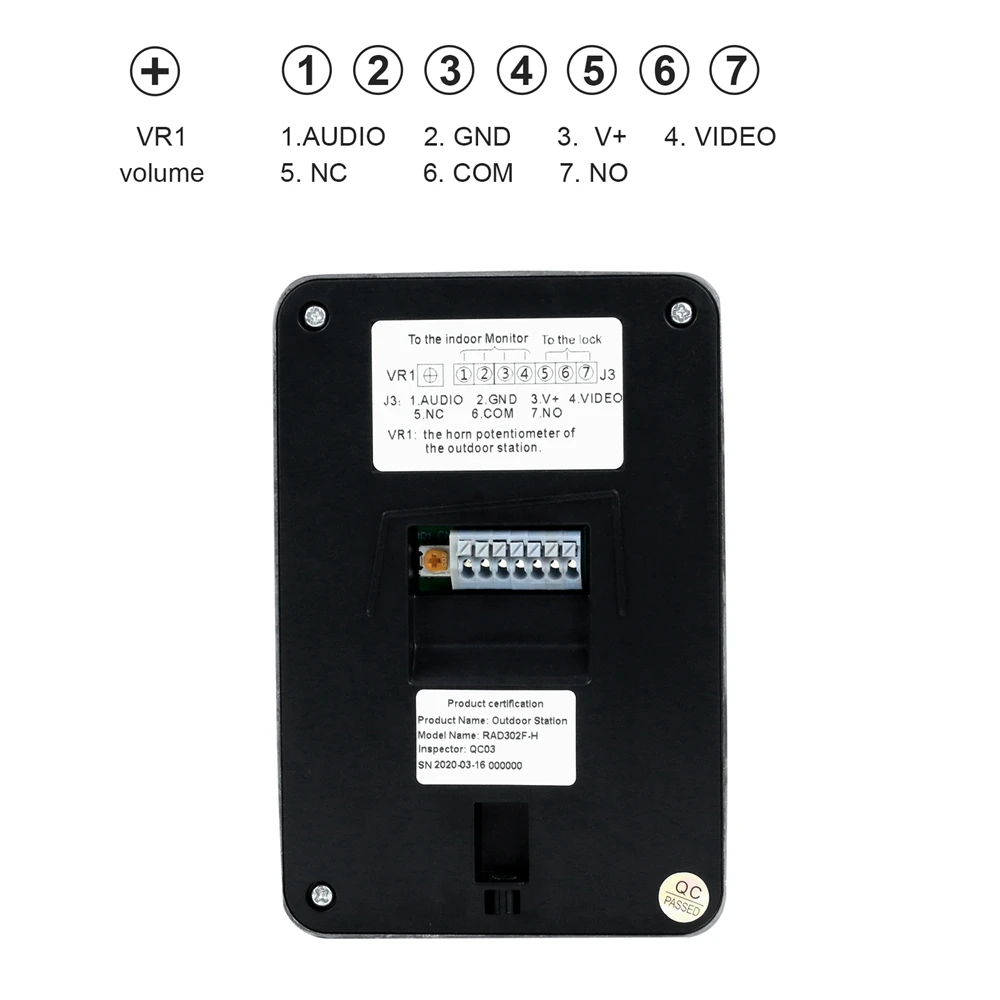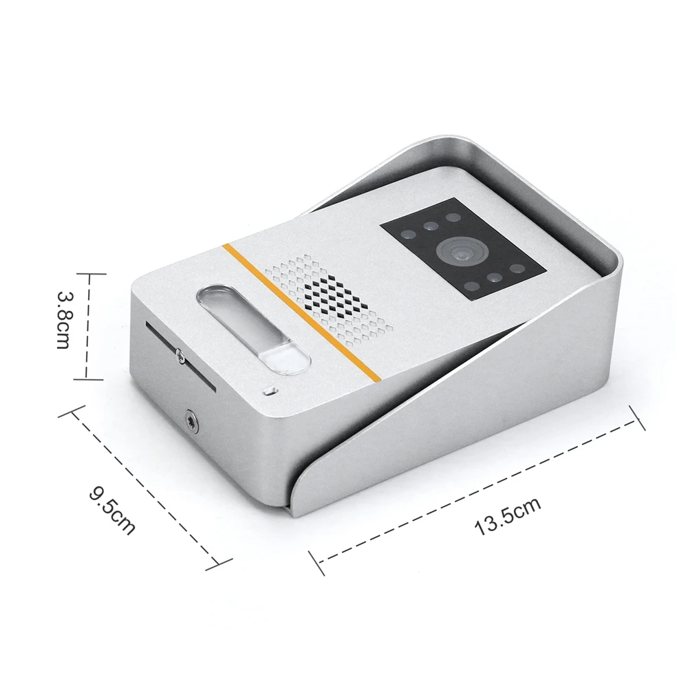 датчик камеры: 1/3 "CMOS, 1200TVL Объектив: 2,3 мм Ночное видение: ИК-свет Электронный замок: поддержка Потребляемая мощность: 200 мА Макс. Материал: панель из алюминиевого сплава Водонепроницаемый: IP63 Рабочая температура: от -40 до 60 градусов Установка: поверхностный монтаж Материал: сплав + акрил