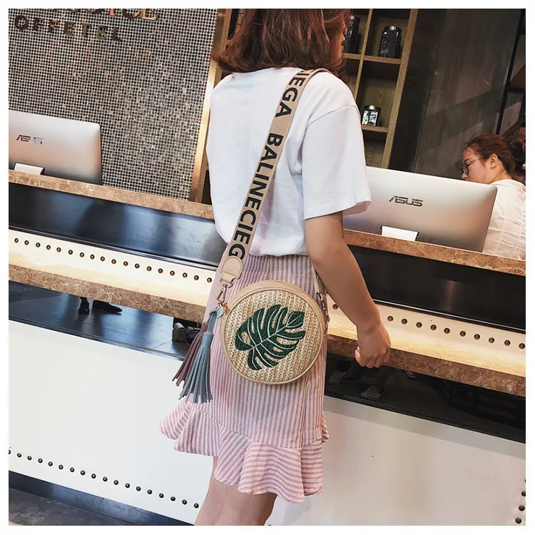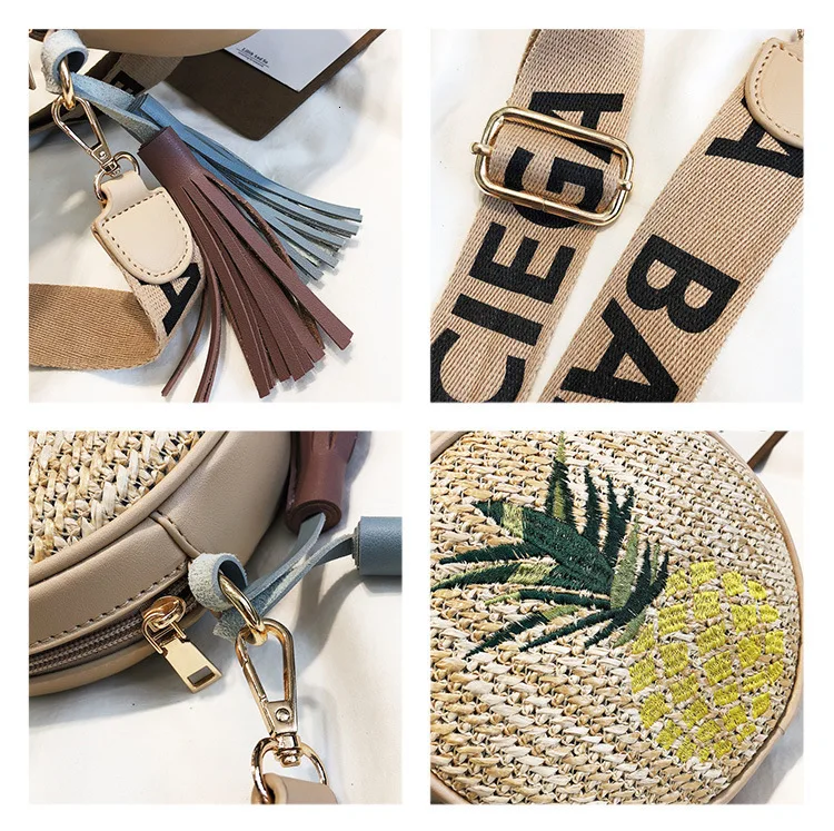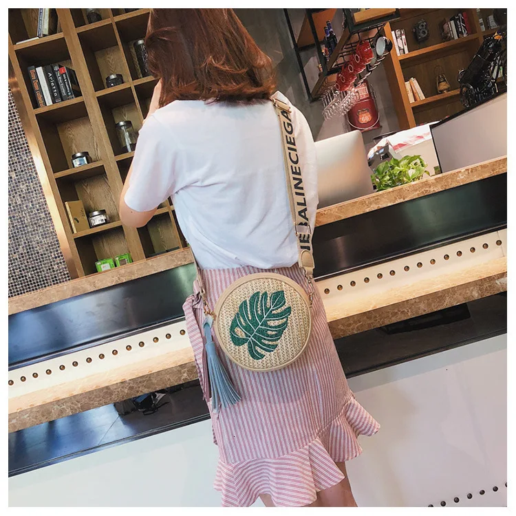 Сумка на плечо с вышивкой для девочек, соломенная сумка из ротанга, тканая круглая сумка, женские сумки и кошельки