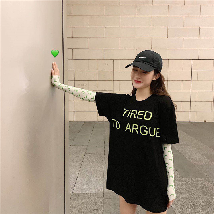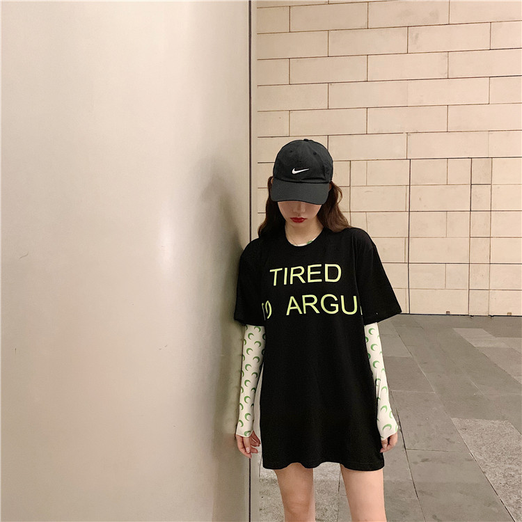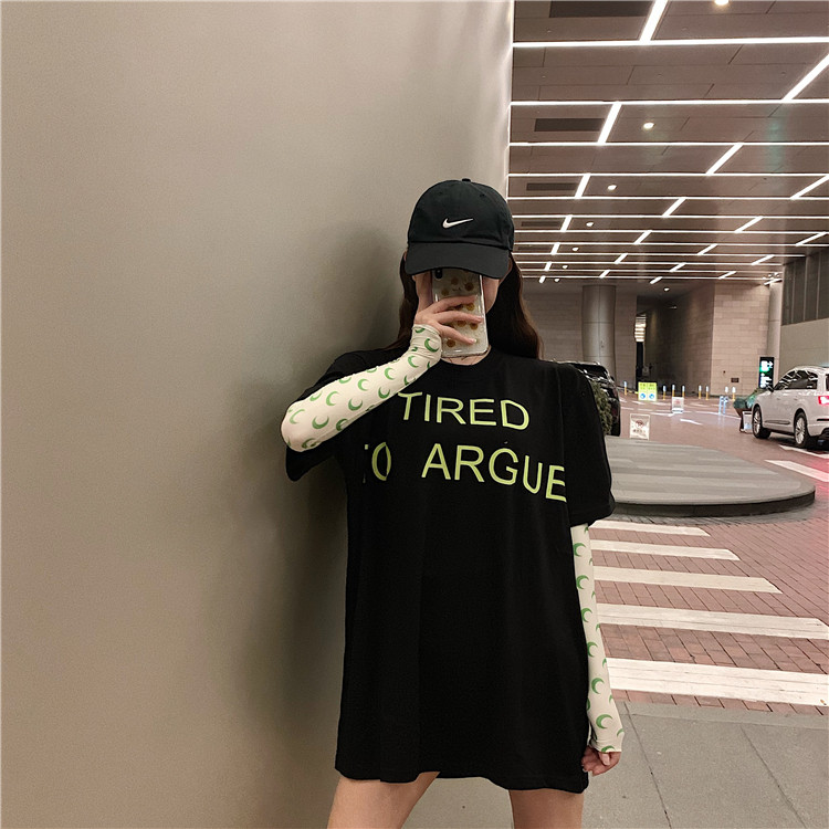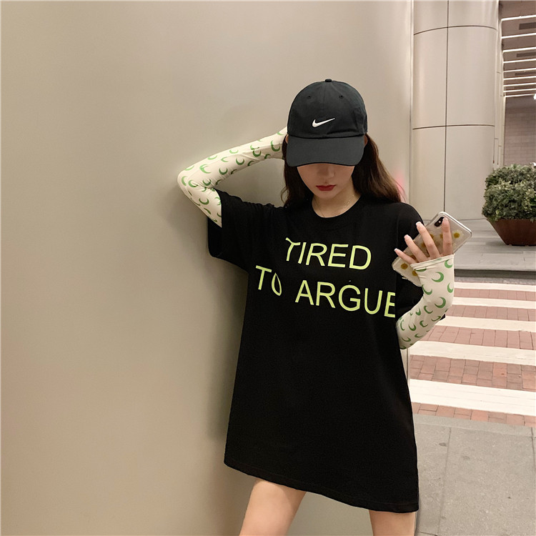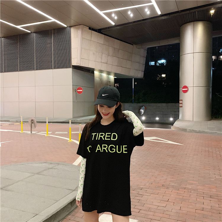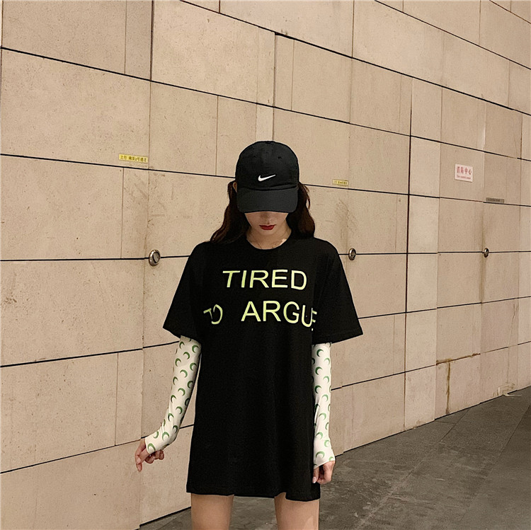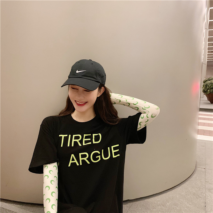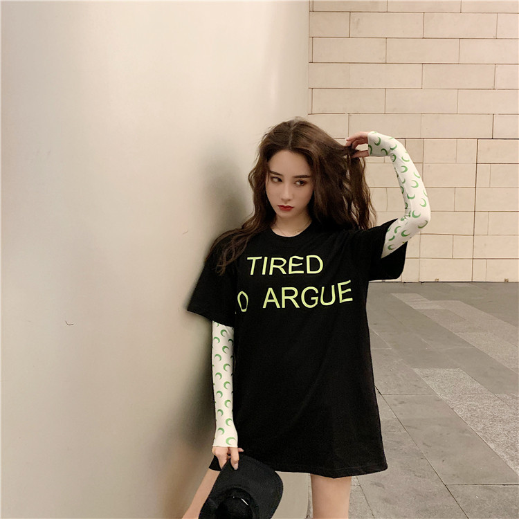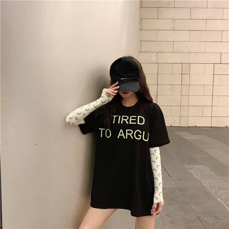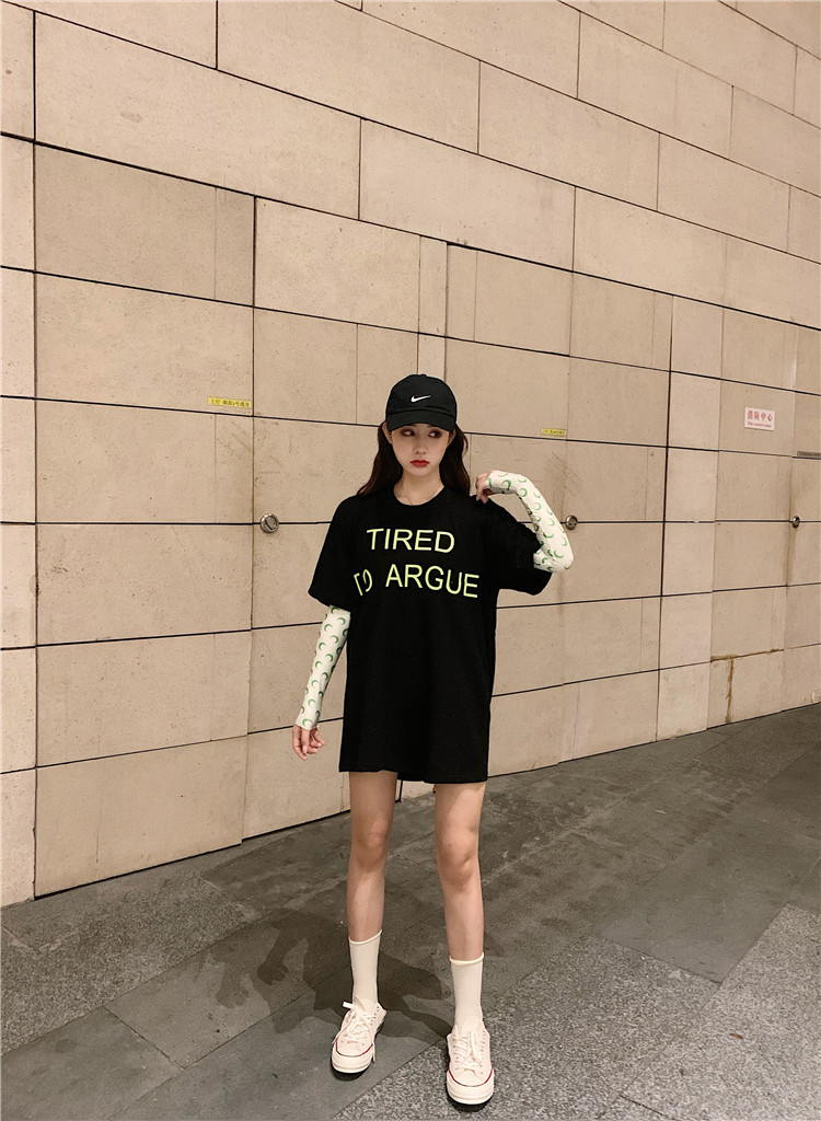 2019 летние топы корейский стиль свободная, с принтом в виде надписи с коротким рукавом футболки женская футболка рубашка femme