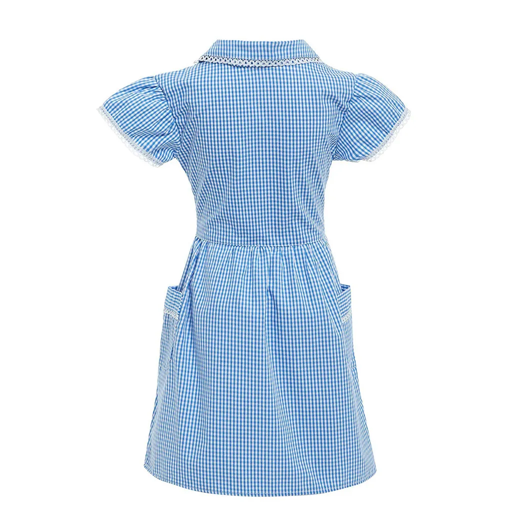 Детское клетчатое платье принцессы с отложным кружевным карманом в клетку для девочек на лето 2019