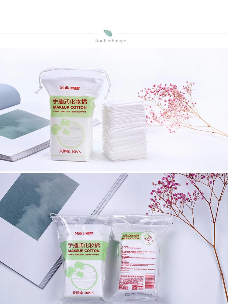 50 шт., средство для снятия макияжа, ручная вставка, средство для удаления кожи, хлопок, для ухода за кожей, сумка на шнурке, макияж для любого типа кожи