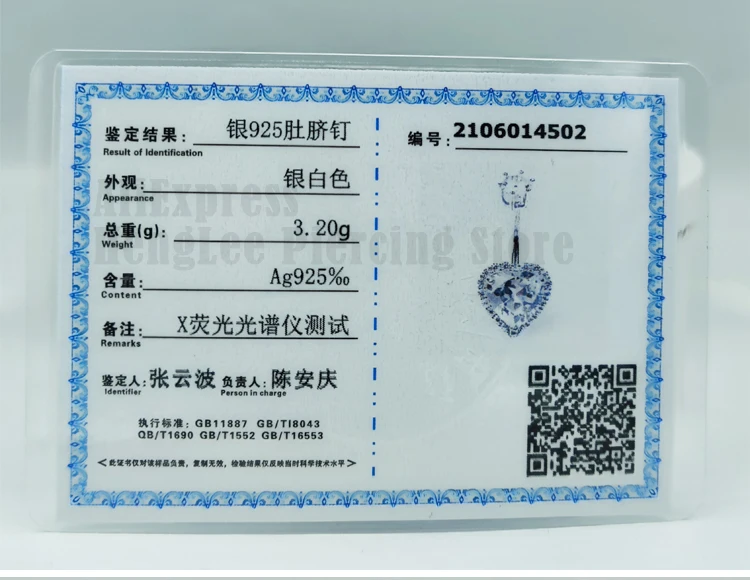 925 пробы Серебряное кольцо для живота, кольцо для пупка