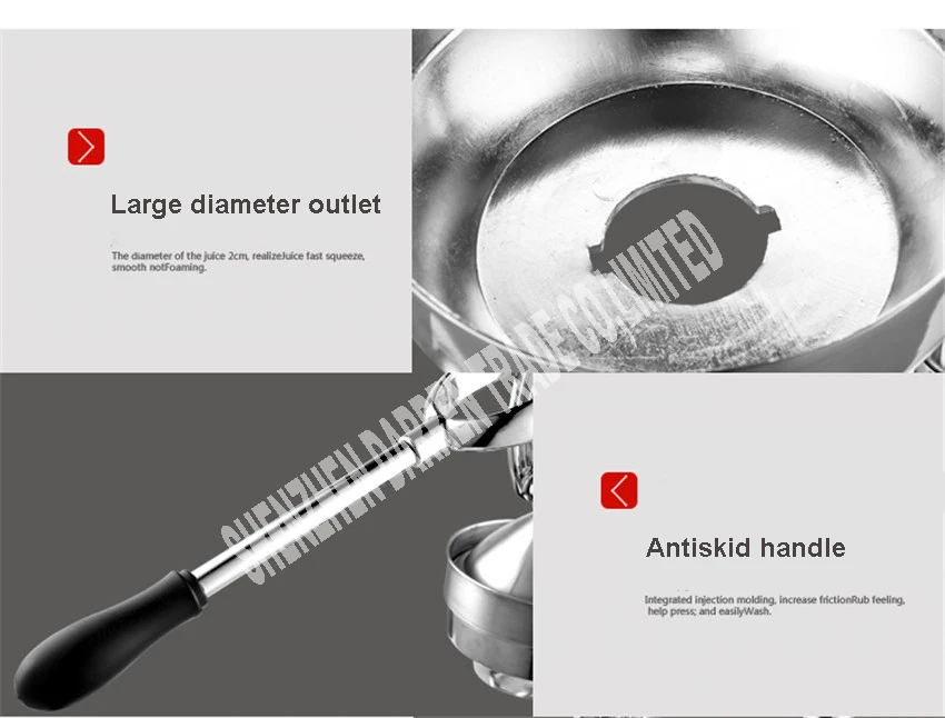 • Специально разработан для сжатия мягких фруктов с кожей, такой как orange, гранат, грейпфрут.