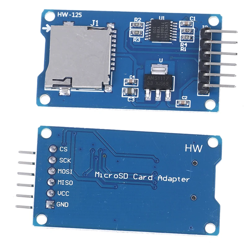 Модуль (адаптер карты MicroSD)-это модуль считывания карт Micro SD, а интерфейс SPI через драйвер файловой системы, микроконтроллер для завершения чтения и записи файлов MicroSD карты. Пользователи Arduino могут напрямую использовать Arduino IDE поставляется с sd-картой для завершения инициализации и чтения карты библиотеки