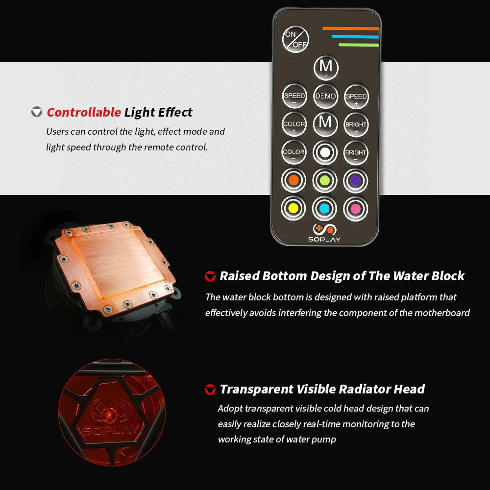 Радиатор поддерживает синхронизацию 12 В RGB материнская плата светильник и поддерживает синхронизацию ASUS/GIGABYTE/Micro-Star материнская плата RGB светильник.