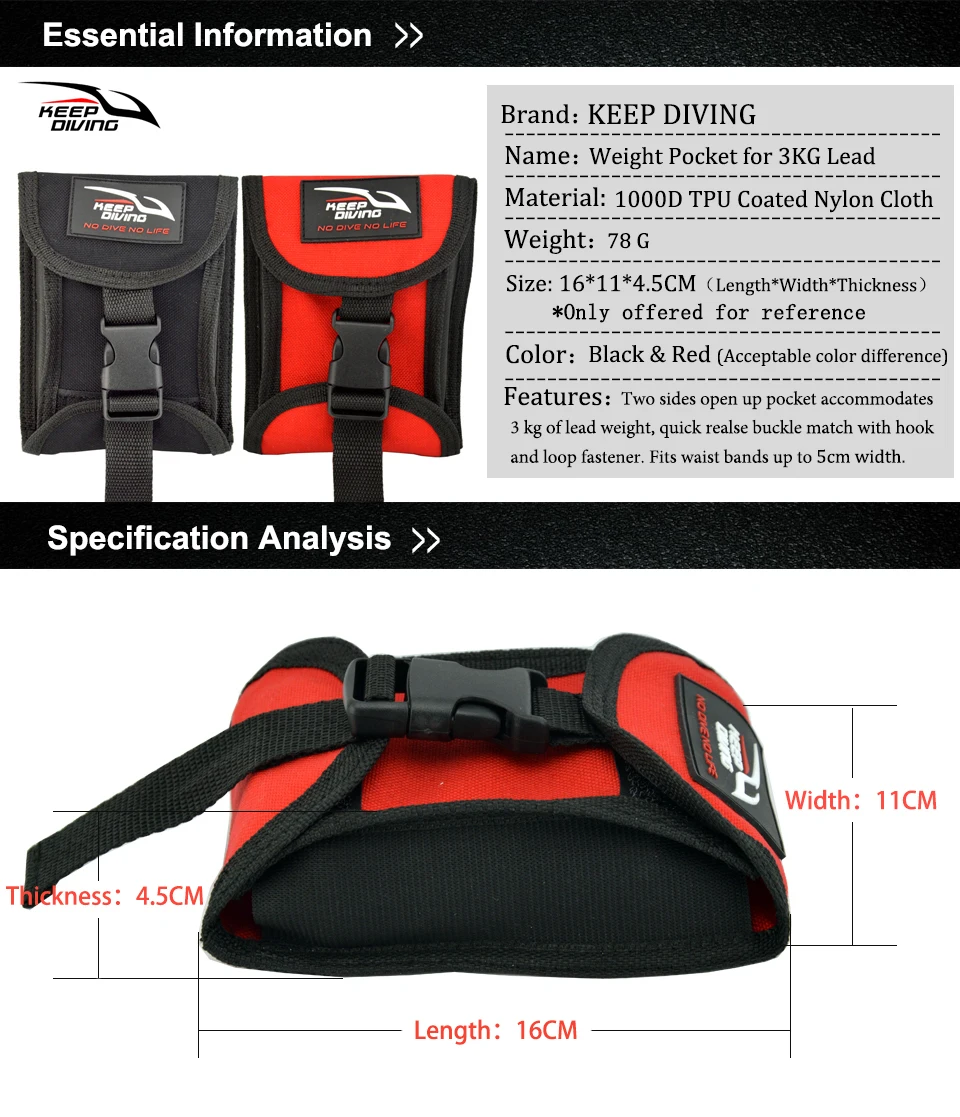1 шт. двусторонний карман для подводного плавания с быстроразъемной пряжкой для веса 3 кг/6 фунтов свинцового веса