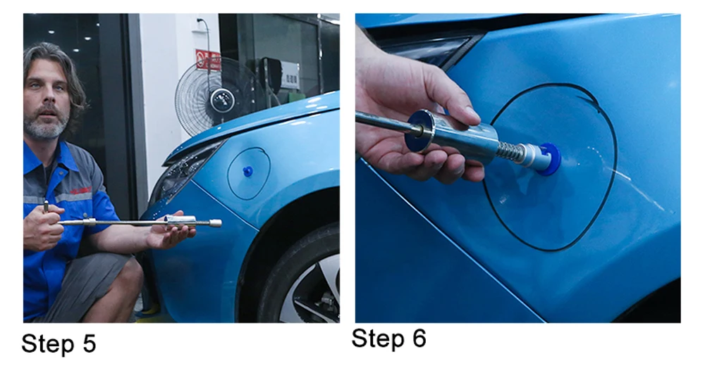 Шаг 5: после нанесения клея быстро вставьте присоску в углубленное положение. Обязательно осветлите его при наклеивании. Не выдавливайте клей наружу. Когда клей быстро остывает, появляется немного остаточной температуры, а прочность сцепления самая большая; Шаг 6: Потяните за главную присоску T-образной головки съемника. Его необходимо держать вертикально и вытаскивать. Не применяйте слишком большое усилие. Повторите операцию несколько раз до тех пор, пока депрессия не станет плоской;