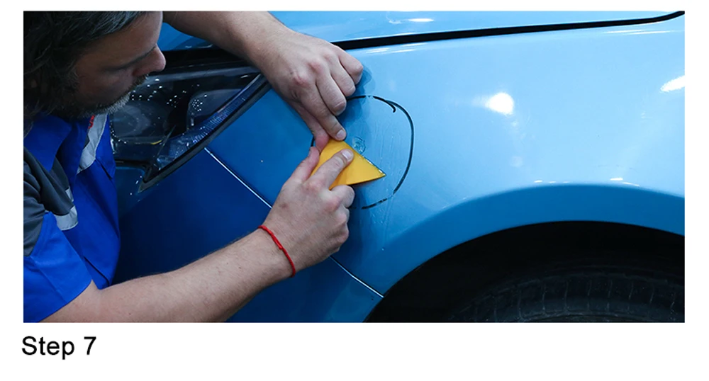 Если указанные выше шаги не выполнены, повторите операцию. Если после ремонта на поверхности появятся приподнятые пятна, выполните следующие действия: 1. Прижмите большим пальцем до тех пор, пока поднятая точка не станет плоской; 2. Если нажатие не удается отремонтировать, используйте выравнивающую ручку для выравнивания поднятых точек и аккуратно коснитесь резиновым молотком, повторите несколько раз, пока ремонт не станет гладким.