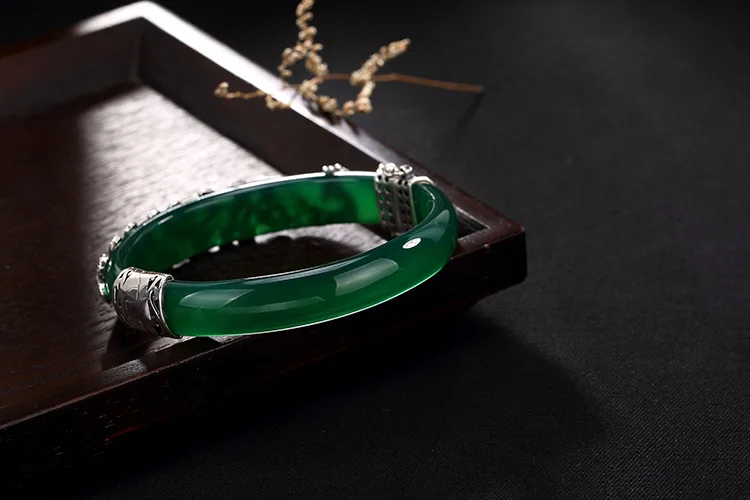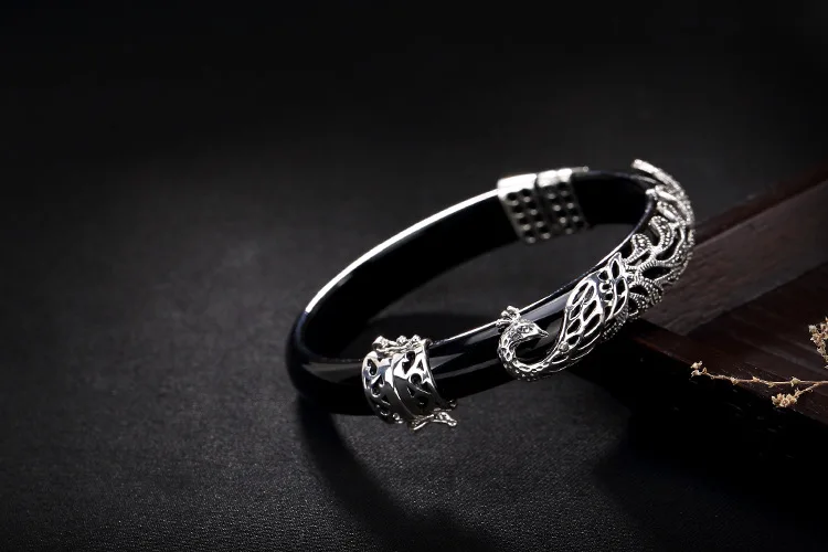Настоящее серебро 925 пробы браслеты для женщин нефрит ручной работы марказит павлин роскошный Халцедон Браслет вечернее платье ювелирные изделия