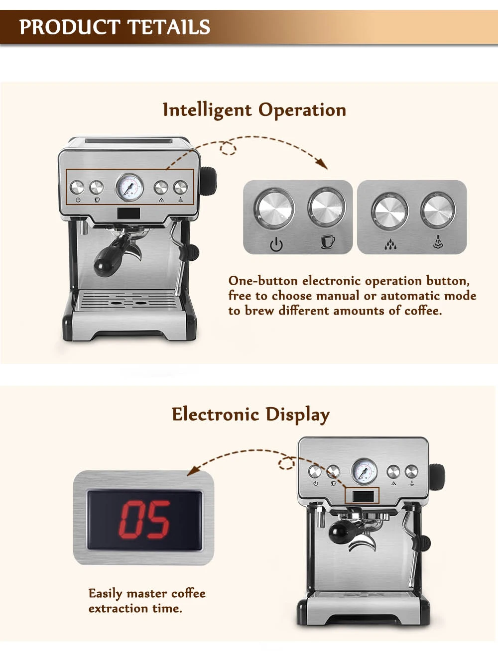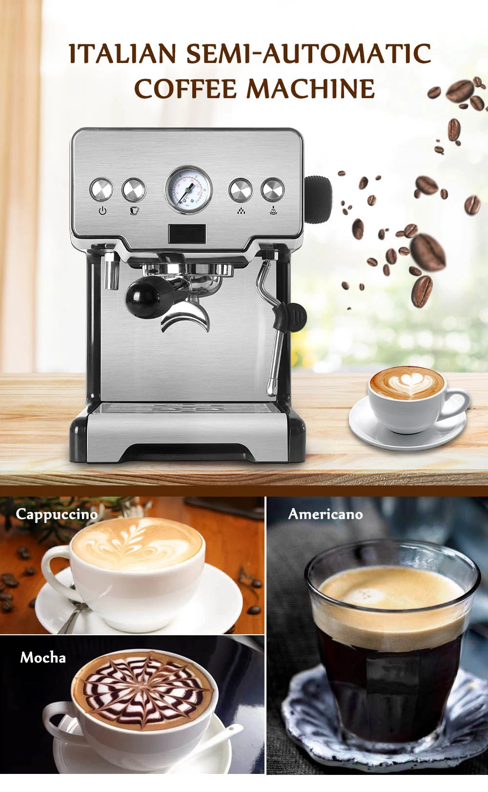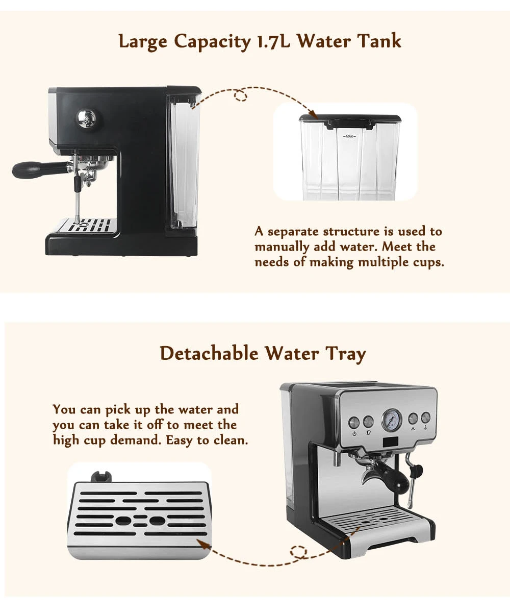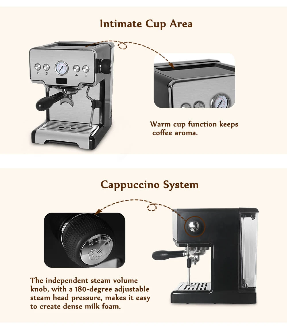 Бытовая Полуавтоматическая кофеварка для эспрессо, многофункциональная кофемашина 15 бар для капучино, латте, молочная пена