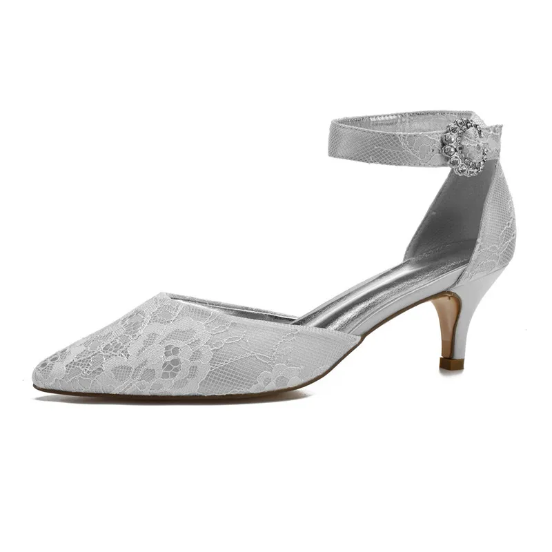 Свадебные туфли на каблуке «рюмочка»; Свадебные туфли для невесты с острым носком и ремешком на щиколотке; Вечерние туфли на низком каблуке; Женские туфли-лодочки