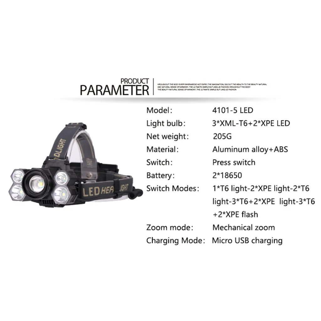Светодиодный налобный фонарь перезаряжаемый налобный фонарь 3 x XML T6 + 2 x XPE LED 18650