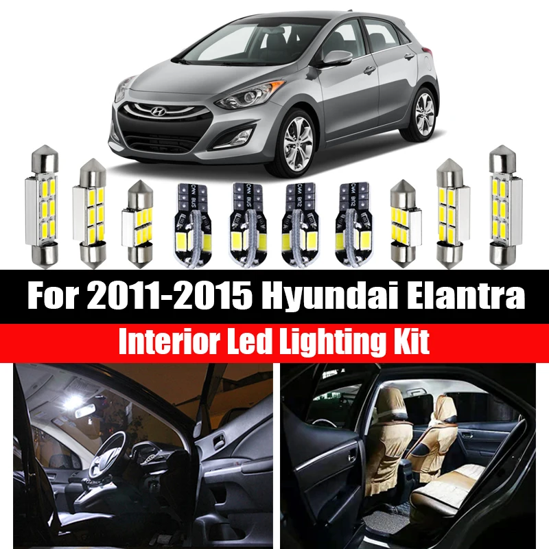 9x Canbus безошибочный светодиодный светильник для интерьера, комплект, посылка для 2011-2015 Hyundai Elantra, автомобильные аксессуары, карта, купол, багажник, лицензионный светильник