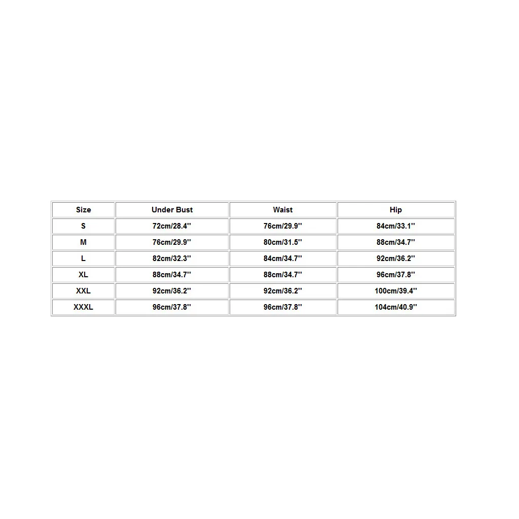 Размер Под грудью Талия Бедра S 72 см/28,4'' 76 см/29,9'' 84 см/33,1'' М 76 см/29,9'' 80 см/31,5'' 88 см/34,7'' L 82 см/32,3'' 84 см/34,7'' 92 см/36,2'' XL 88 см/34,7'' 88 см/34,7'' 96 см/37,8'' XXL 92 см/36,2'' 92 см/36,2'' 100 см/39,4'' XXXL 96 см/37,8'' 96 см/37,8'' 104 см/40,9''