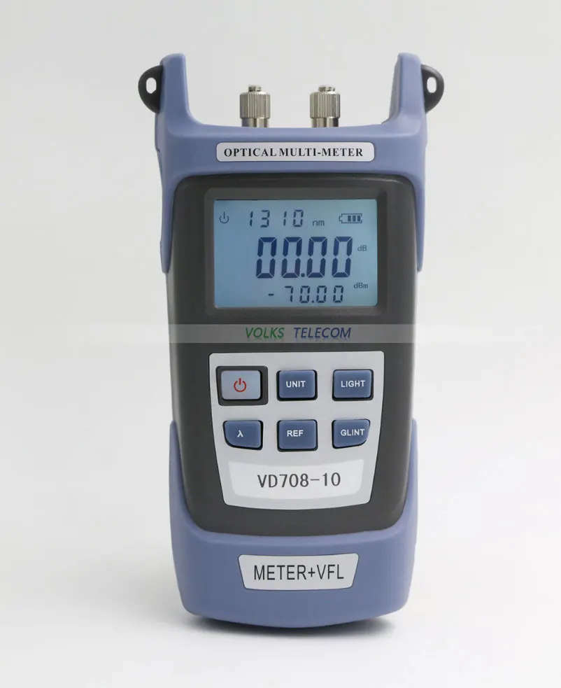 VOLKS предлагает тестовый er кабеля нового поколения FTTH-VD708-10mW, направленный на тест FTTx, быстрое обнаружение потери и быстрый доступ к тесту. Оптический измеритель мощности серии VD708 отличается компактной структурой и стабильной производительностью. Они обеспечивают высокую точность измерений шести наиболее распространенных длин волн, которые охватывают как несколько, так и одиночный режим-850nm, 980,1300nm, 1310nm, 1490nm, 1550nm и 1625nm. Конструкция с низким энергопотреблением увеличивает непрерывное рабочее время до 40 часов.