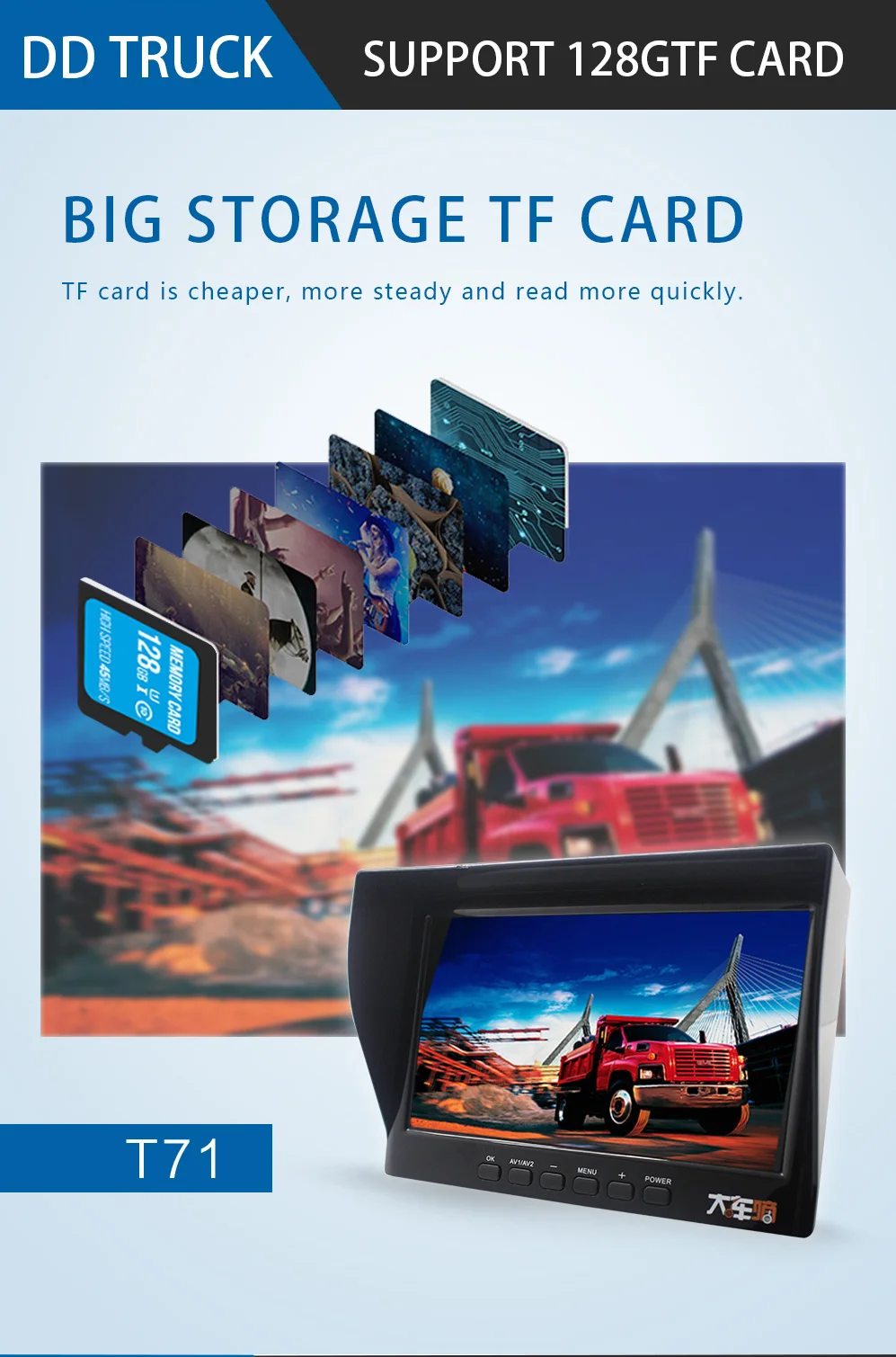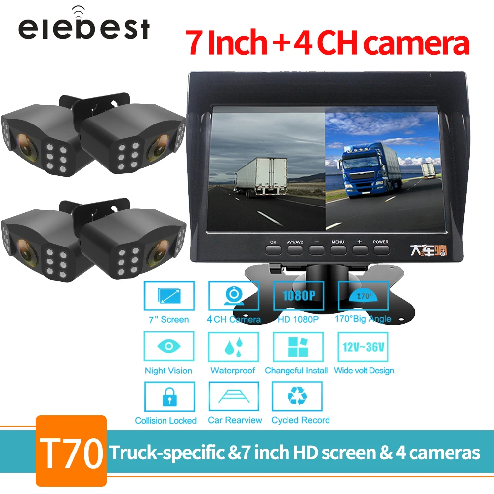Описание: * 7 дюймов 4 Ch 720P четыре сплит-монитора * Этот видеорегистратор поддерживает четыре камеры записи. Он также обеспечивает мгновенное воспроизведение видео. Докажите свою невинность за считанные секунды, оставаясь на * Видео записано в tf-карте. Поддержка макс. памяти sd-карт 128 Гб (не входит в комплект). * Четыре камеры одновременно записывают Технические характеристики: * Дисплей: 7,0 "HD ISP 720P четыре сплит-монитора * Поддержка макс. памяти sd-карт: 128 ГБ * Объектив камеры 4 камеры: AHD720P * 5,0 M датчик изображения с углом обзора 170 градусов * Четыре эффективных пикселя камеры: 1280*720 пикселей * Формат видео: TS * Формат фото: JPEG * Мощность: 9-36 В постоянного тока * Водонепроницаемый, ночное видение, ударопрочный, без помех, без задержки * Поддержка функции: DVR, реверсивная/парковочная помощь * Тип товара: Автомобильный видеорегистратор, Реверсивный/парковочный безопасный комплект * Особенности 1: защита от вибрации, широкий динамический диапазон, циклическая запись * Особенности 2: ночное видение, четыре объектива, реверсивная/парковочная помощь