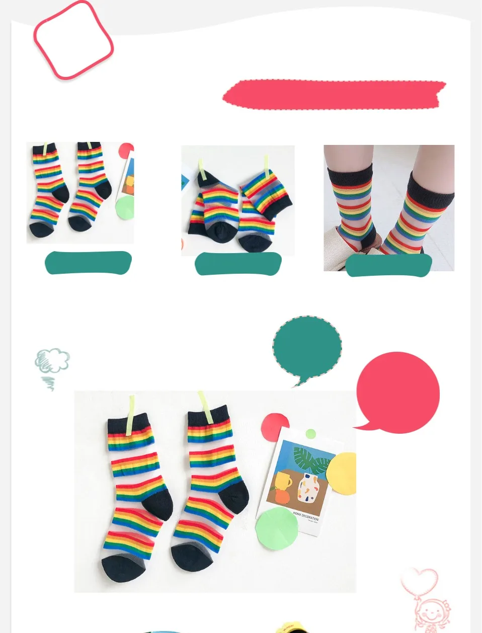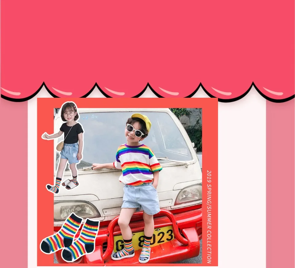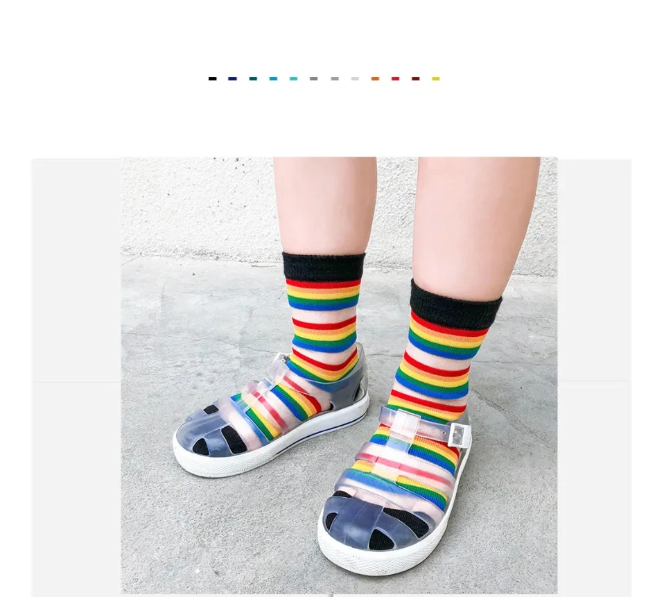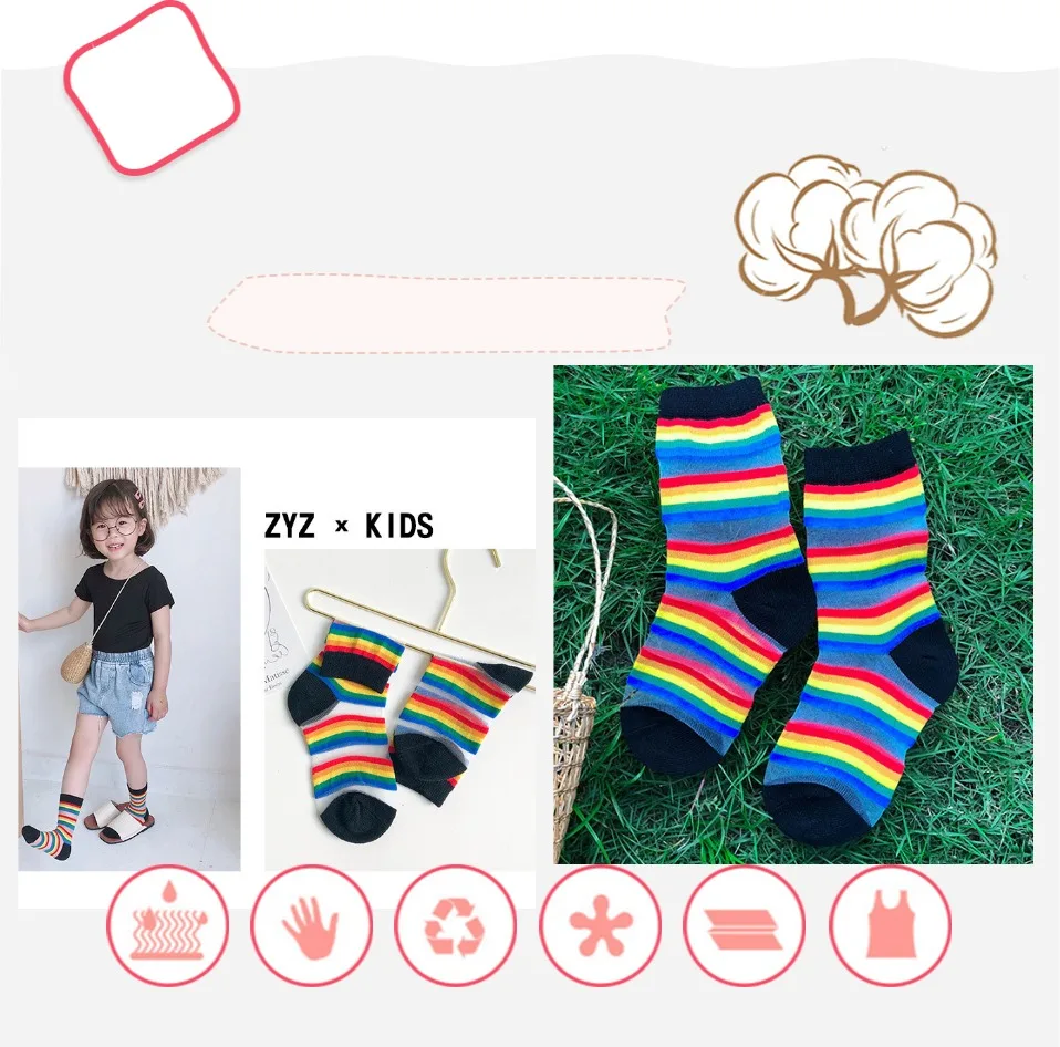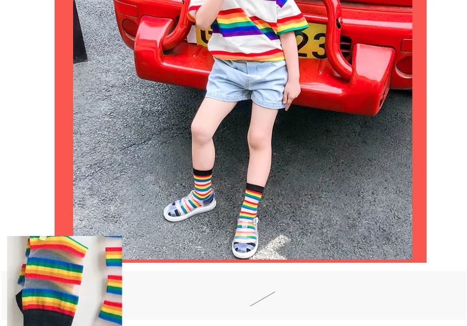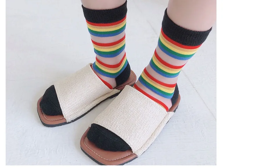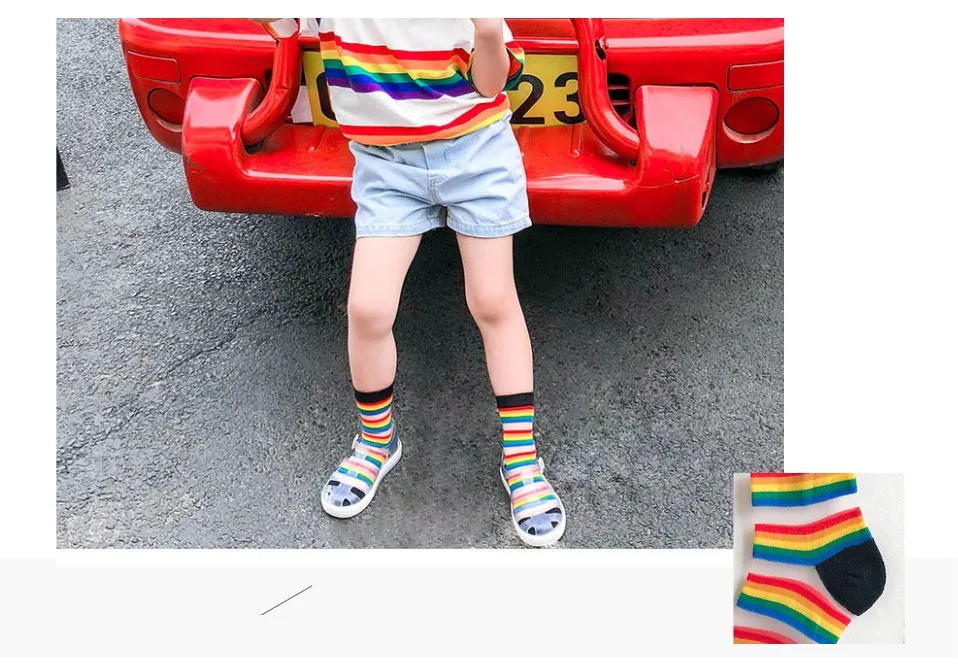 Детские носки летние тонкие сетчатые носки с радужными полосками, украшенные кристаллами и бантиками для девочек и мальчиков