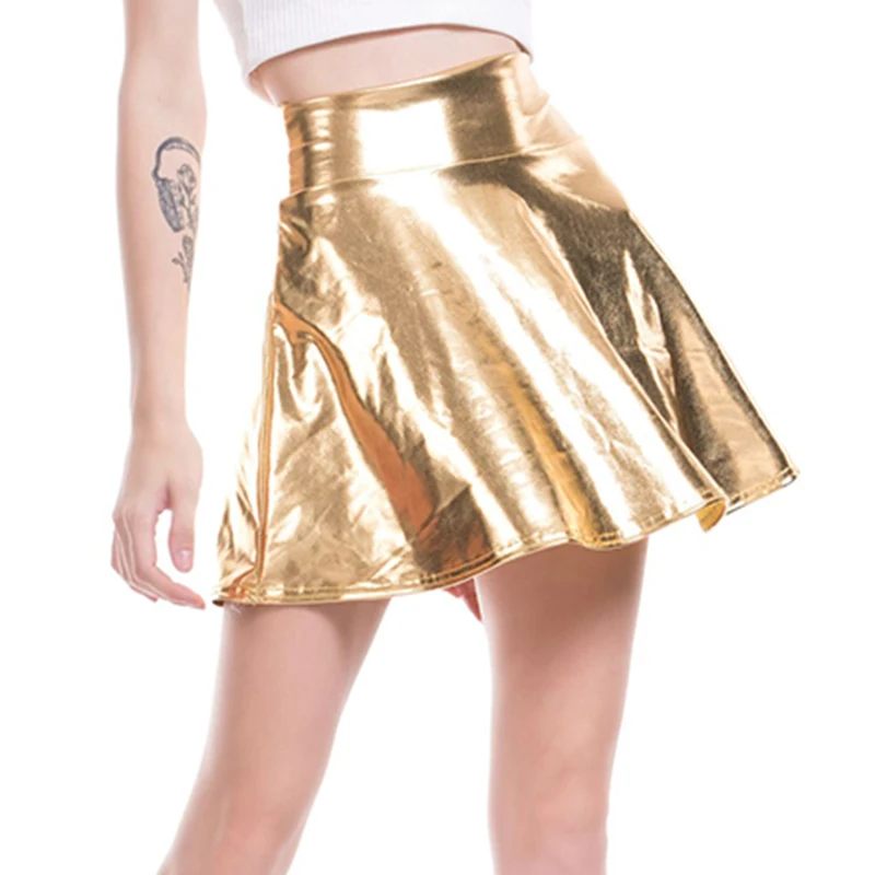 * Описание товара: женское сексуальное блестящее металлическое мокрое платье расклешонное короткое Плиссированное мини-платье