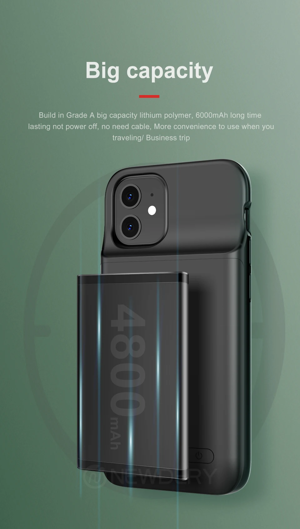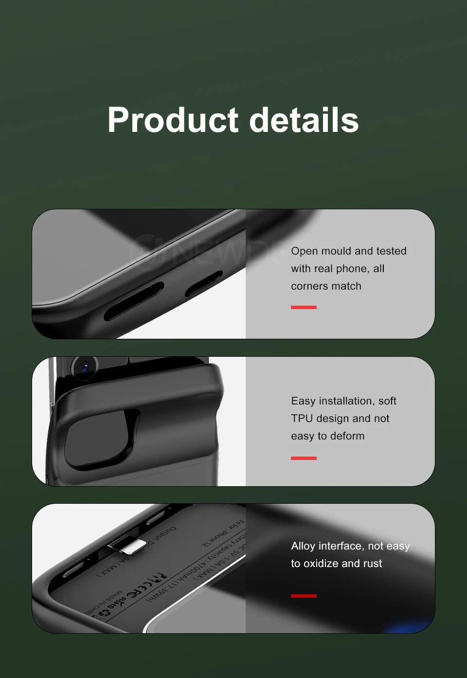 Newdery портативный зарядный чехол для iphone 12 mini 4700mAh мягкий TPU + PC дизайн корпус питания для iphone 12/12 pro ,12 pro max черный