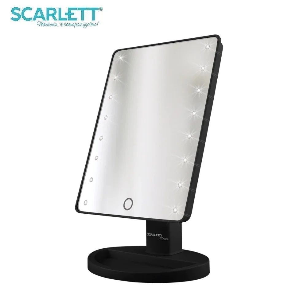 Косметическое зеркало изящный аксессуар, с корпусом черного цвета и настольной подставкой является односторонним, оно имеет площадь 219x159 мм и подходит для нанесения макияжа. Удобству использования аксессуара способствует наличие 16 встроенных светодиодов. Используя его, вы сможете уделить больше внимания самым миниатюрным деталям мейк-апа. Положение зеркала удобно регулировать как по вертикали, так и по горизонтали. Изменение горизонтального угла поворота – 180°, идеальный макияж с любого ракурса. Питание от 4-х батареек АА 1,5V (не включены в комплект). Косметическое зеркало SCARLETT Vita Spa SC - MM308L05 - отличное решение для тех, кто любит макияж. Благодаря плавной регулировке подсветки ONE TOUCH позволит установить необходимую интенсивность для той или иной процедуры. Идеальный макияж с любого ракурса!