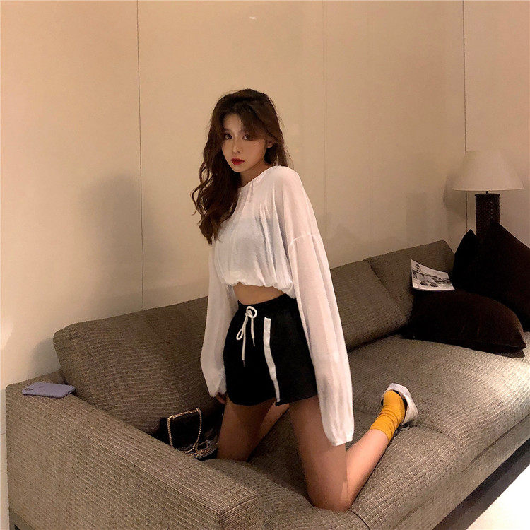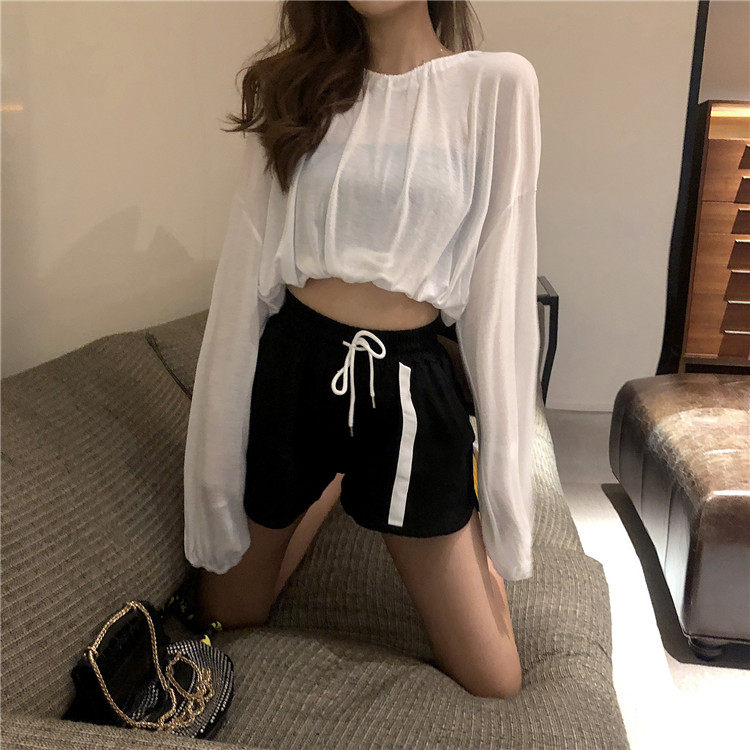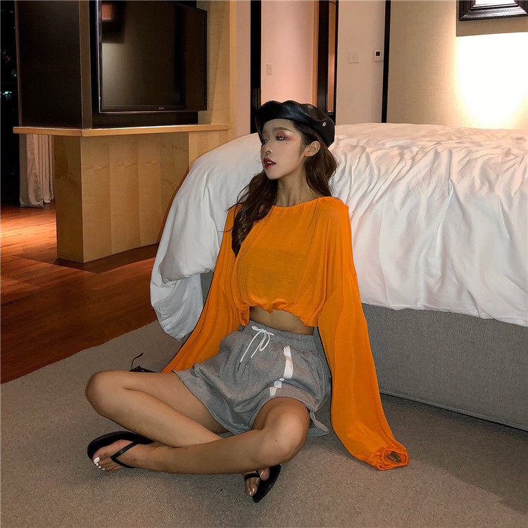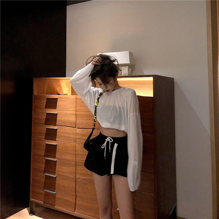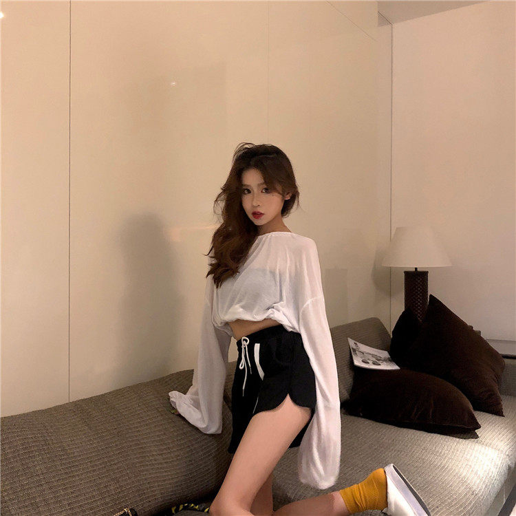 3 цвета, лето 2019, корейский стиль, сплошной цвет, длинный рукав, защита от солнца, футболки, женские, прозрачные, женская футболка