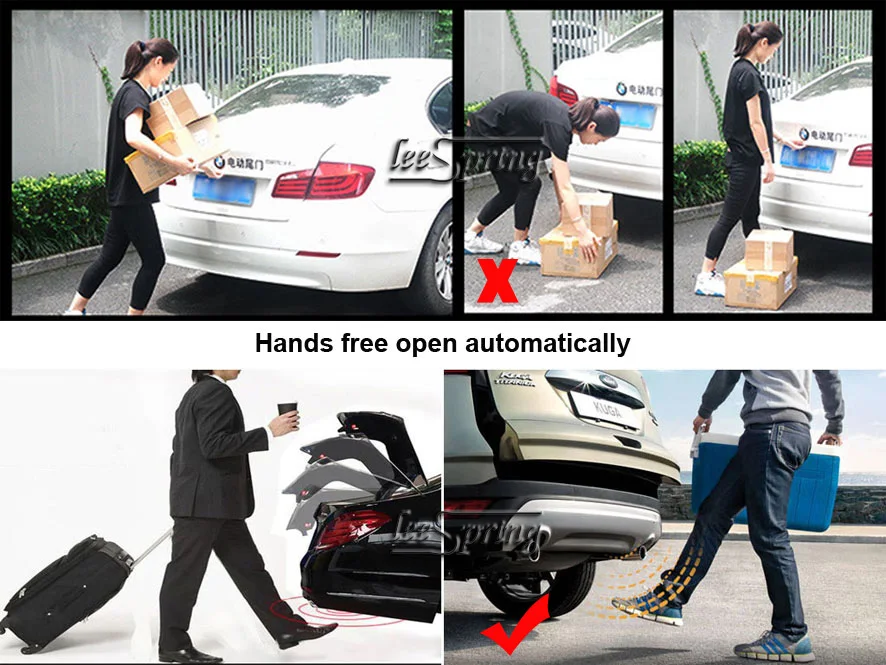 Свободные руки, открываются автоматически! Он определит владельца автомобиля с помощью пульта дистанционного управления, а затем обнаружит весь процесс вверх-вниз, чтобы автоматически открыть или закрыть багажник.