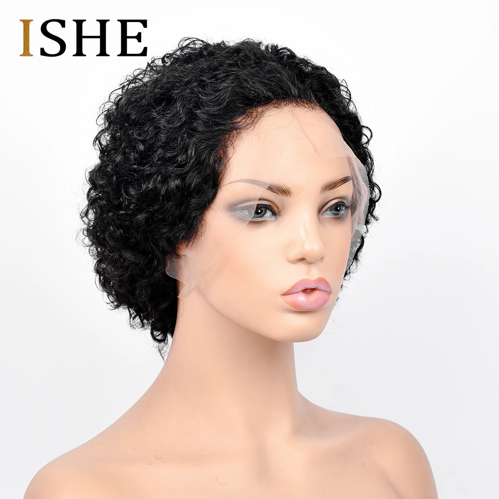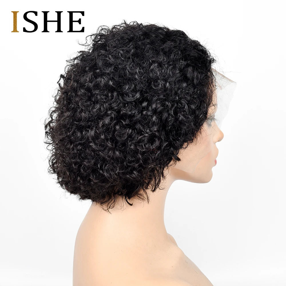Кудрявые передние парики из человеческих волос, короткие парики из предварительно отобранных волос, натуральные волосы Remy без клея, парики для женщин, черные волосы