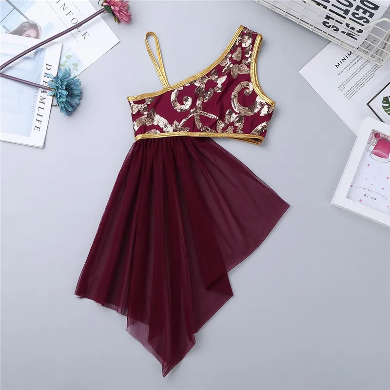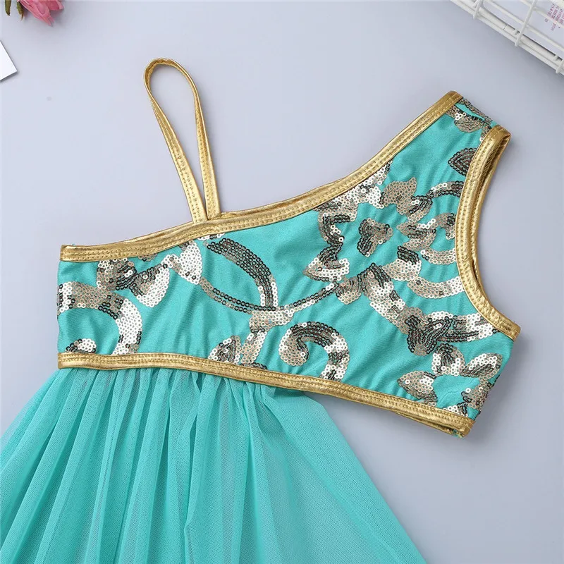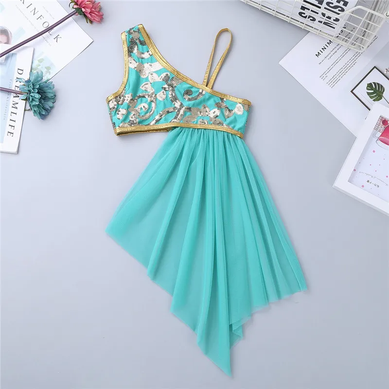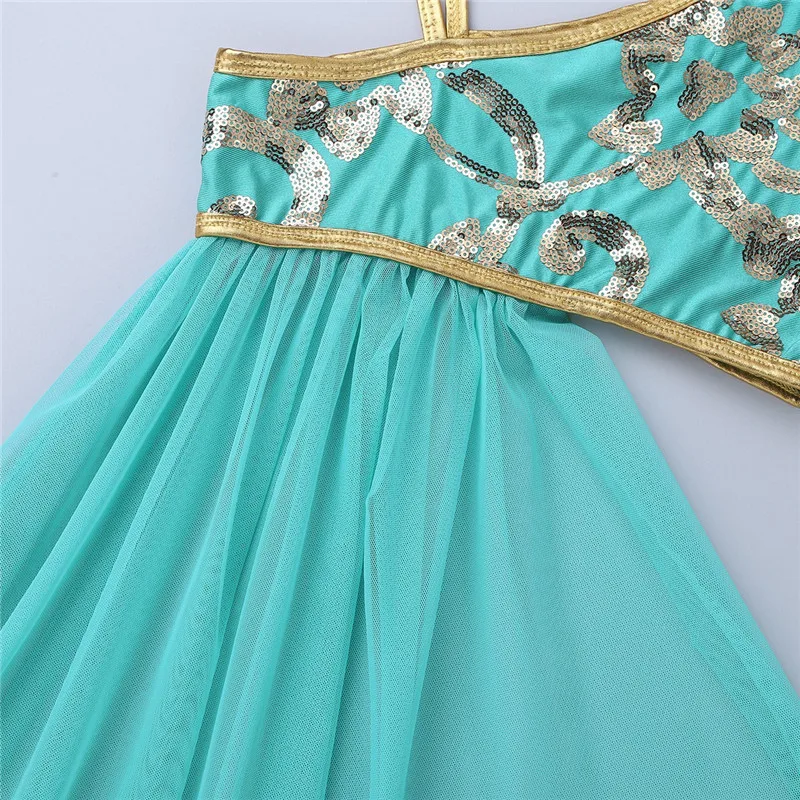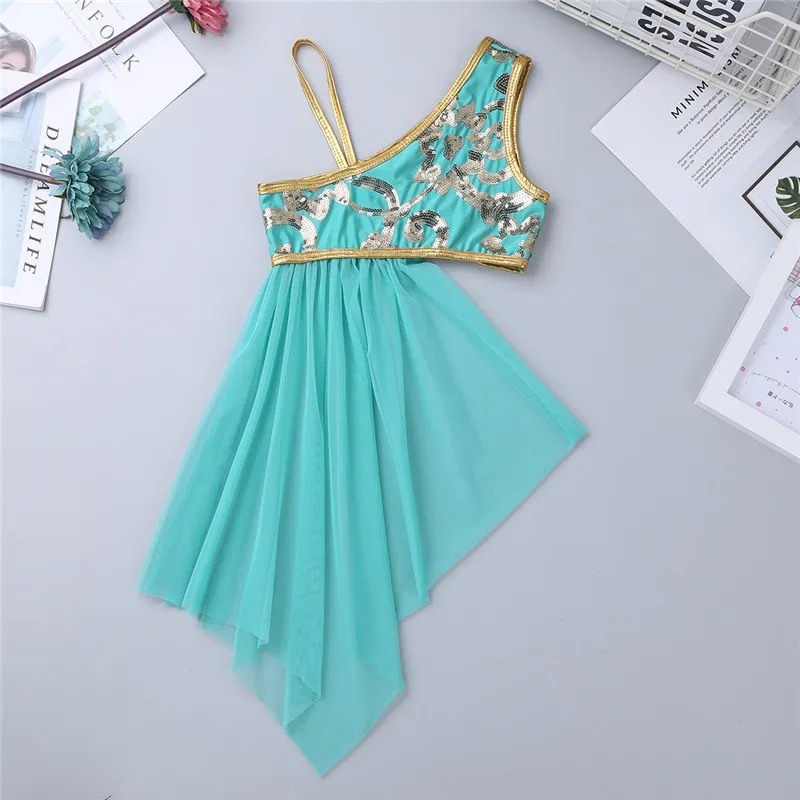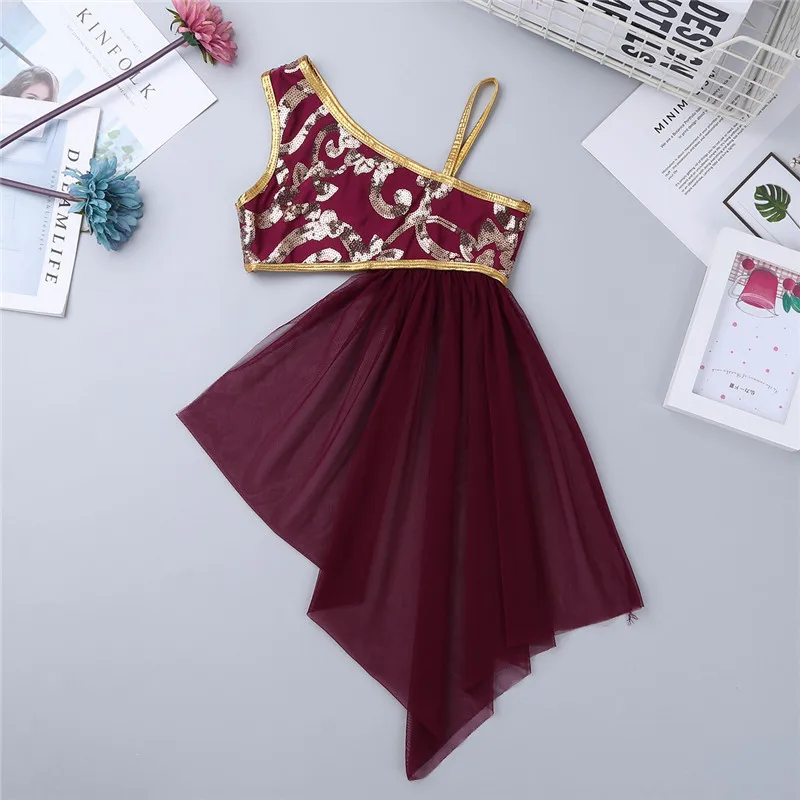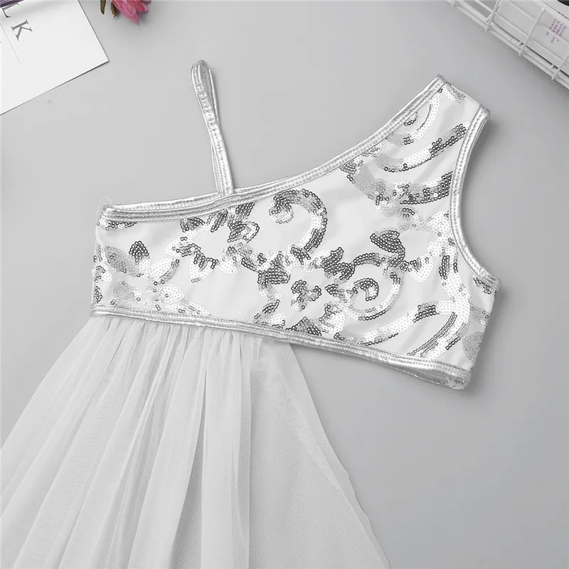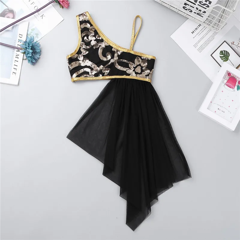 Комплект из 2 предметов для маленьких девочек, топ с цветочным принтом и пайетками, юбка с открытой талией и низом, современный Лирический комплект для танцев