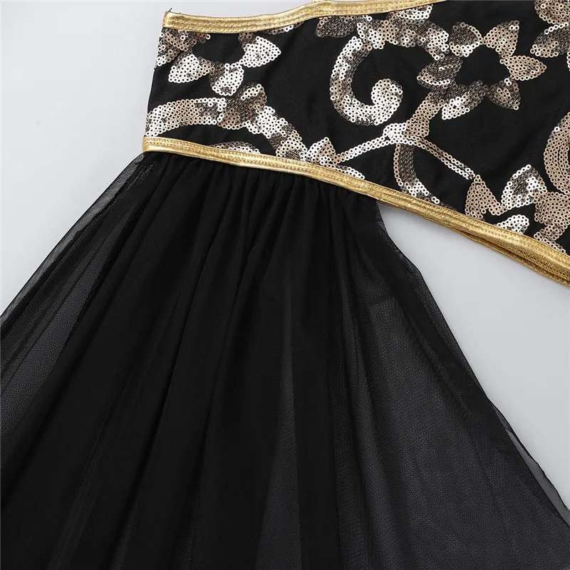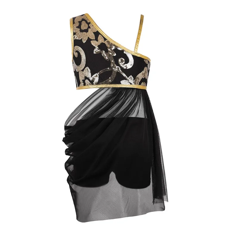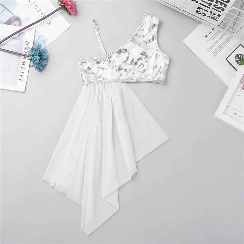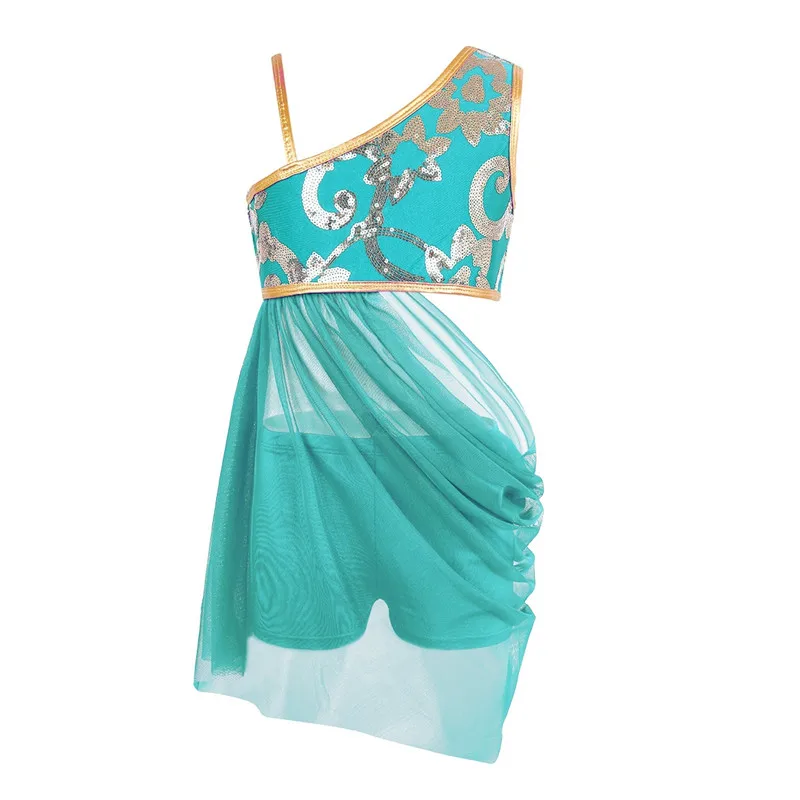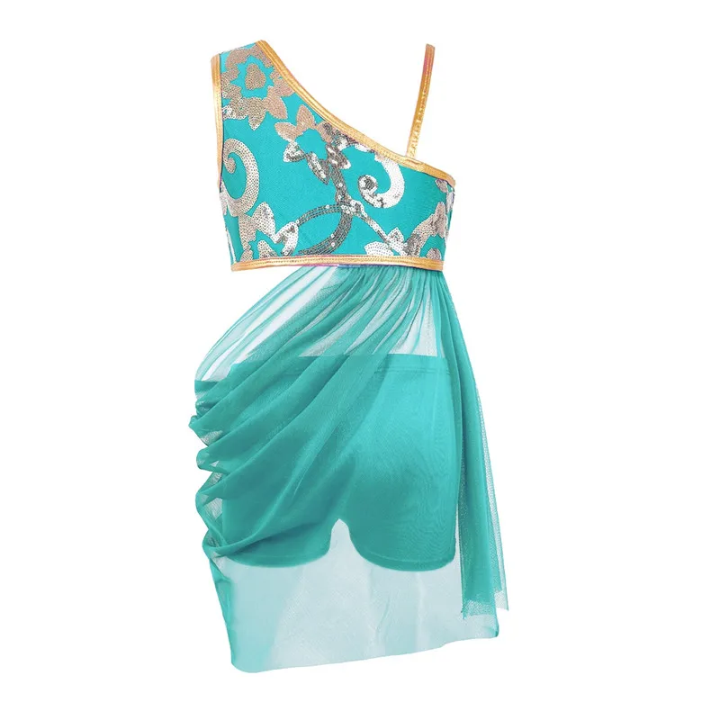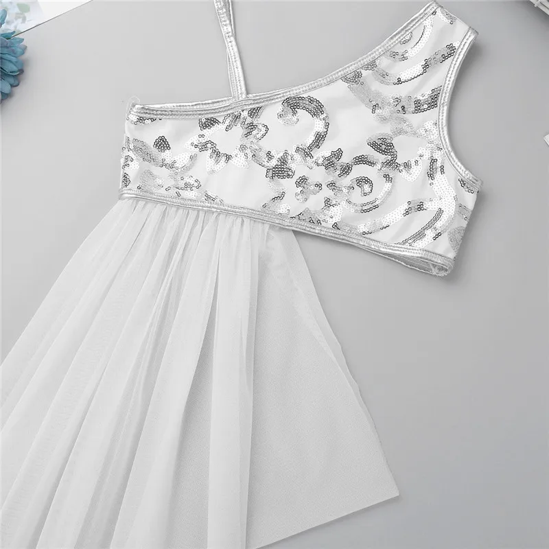 Сетчатая юбка с вырезами по бокам и высокой талией. Подходящие брюки с эластичным поясом. Красивый танцевальный костюм для вашей девочки.
